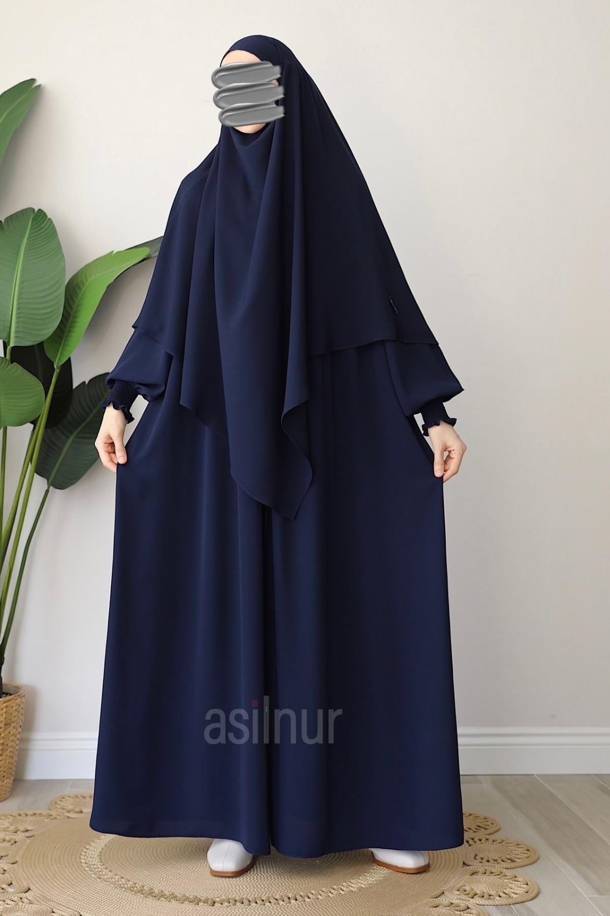 Alya Ferace Sufle Hediyeli Takım, yüksek kaliteli 1. sınıf Mısır Medine ipeği ile üretilmiştir. Kol kısmındaki gipe lastik detayı, kullanım rahatlığının yanı sıra modern bir şıklık da sağlar. Fermuarlı tasarımı sayesinde kolayca giyilip çıkarılabilir. Yan cepleri pratiklik sunarken, takımla uyumlu sufle hediye olarak pakete dahildir.