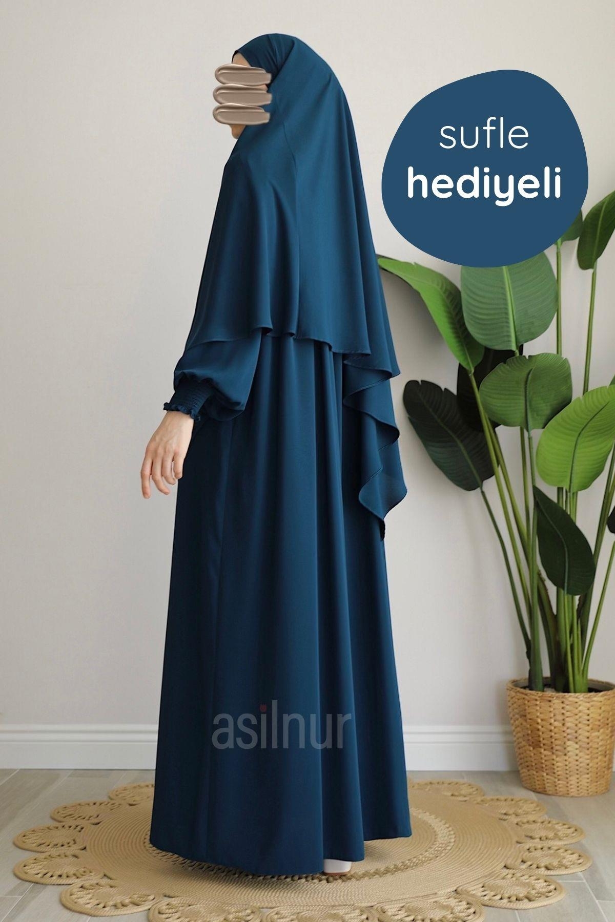 Asil Ferace Sufle Peçe Takım Petrol Mavisi