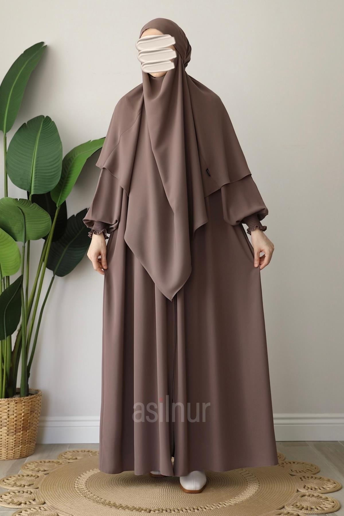 Alya Ferace Sufle Hediyeli Takım, yüksek kaliteli 1. sınıf Mısır Medine ipeği ile üretilmiştir. Kol kısmındaki gipe lastik detayı, kullanım rahatlığının yanı sıra modern bir şıklık da sağlar. Fermuarlı tasarımı sayesinde kolayca giyilip çıkarılabilir. Yan cepleri pratiklik sunarken, takımla uyumlu sufle hediye olarak pakete dahildir.