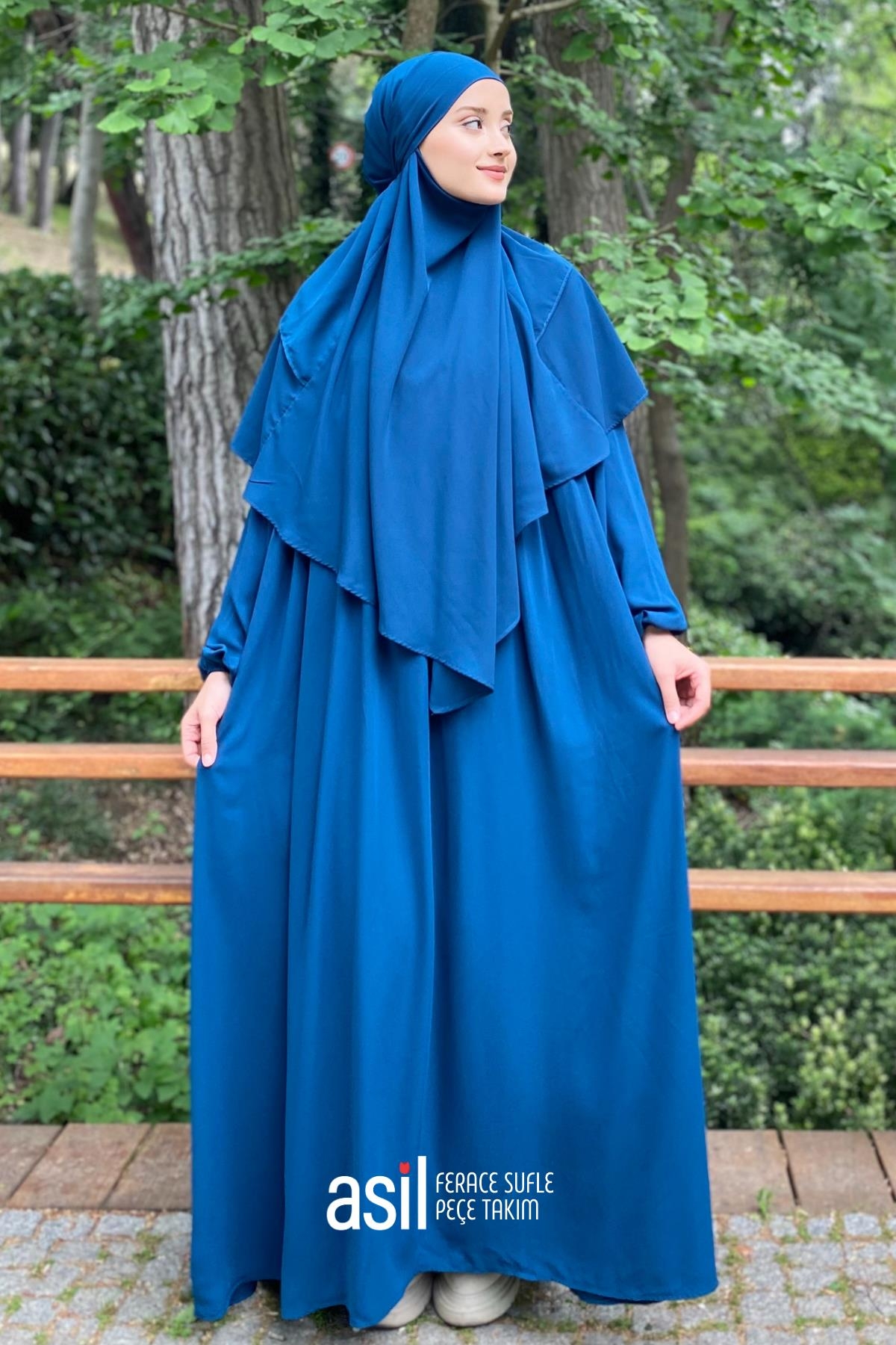 Asil Ferace Sufle Peçe Takım Petrol Mavisi