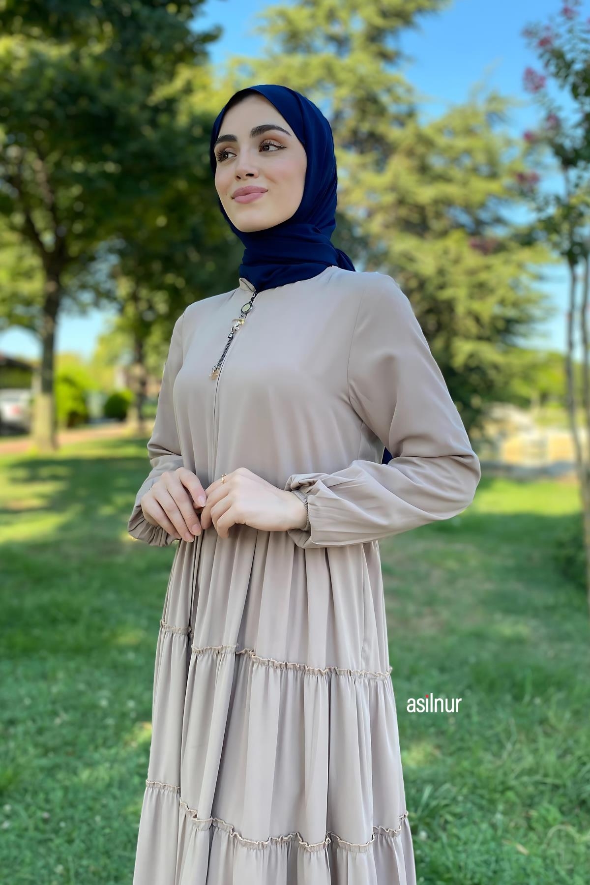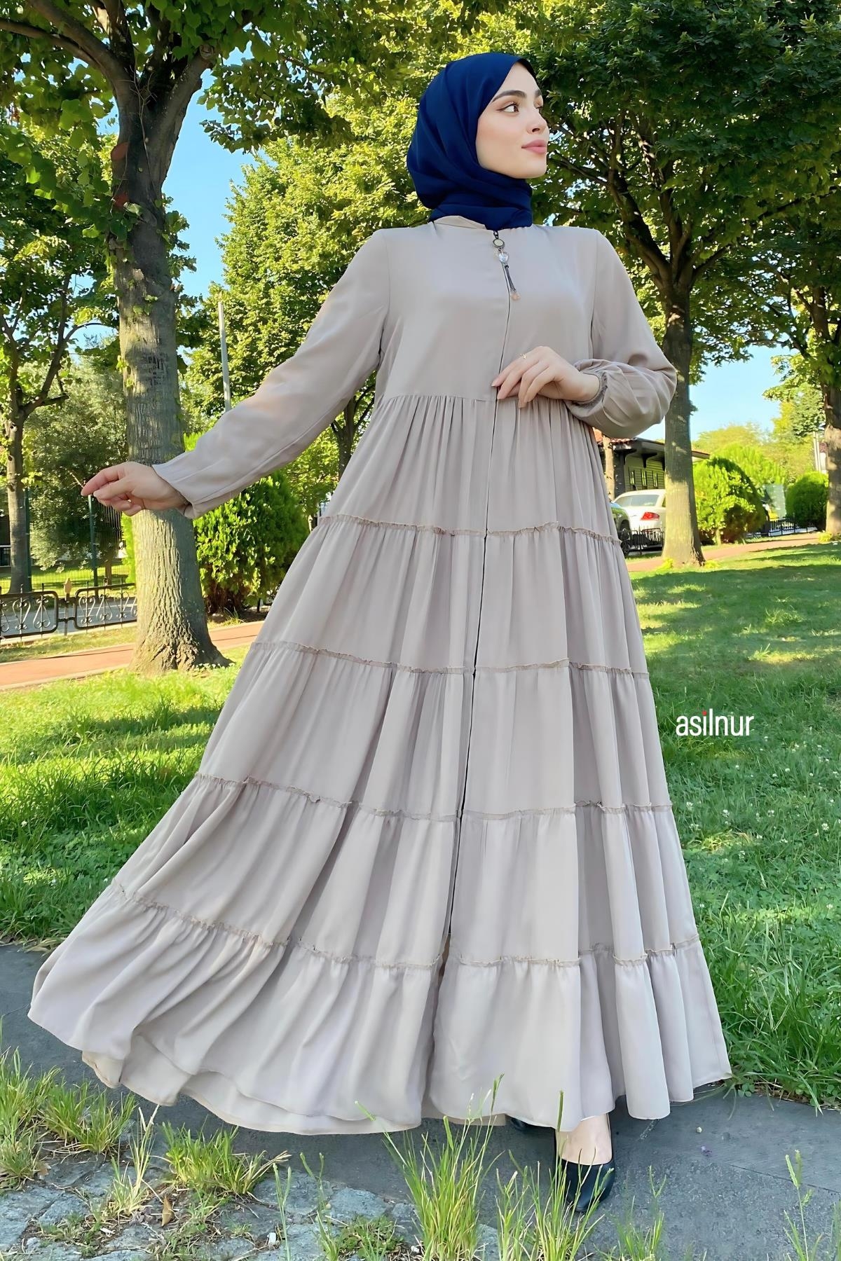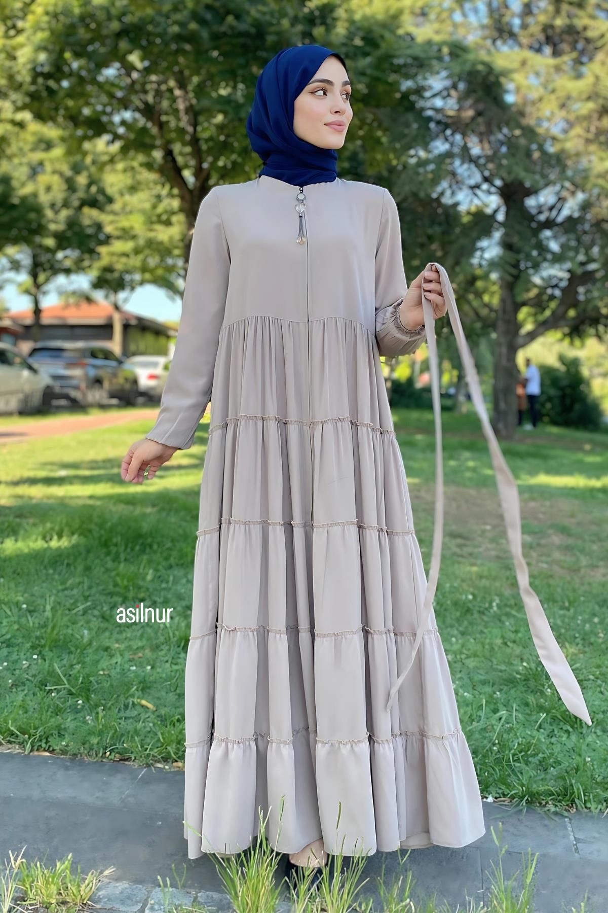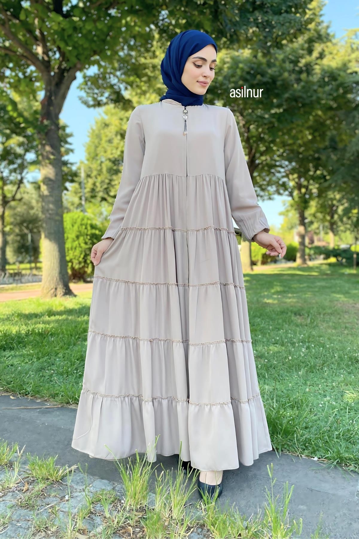 Buket Ferace Medine İpeği kumaşıyla dört mevsim zarif bir seçenek sunar. Tam kalıbı ve bisiklet yaka tasarımıyla sade bir duruş sergileyen bu model, lastikli manşetleri ve fermuar detayıyla konforu ön planda tutar.