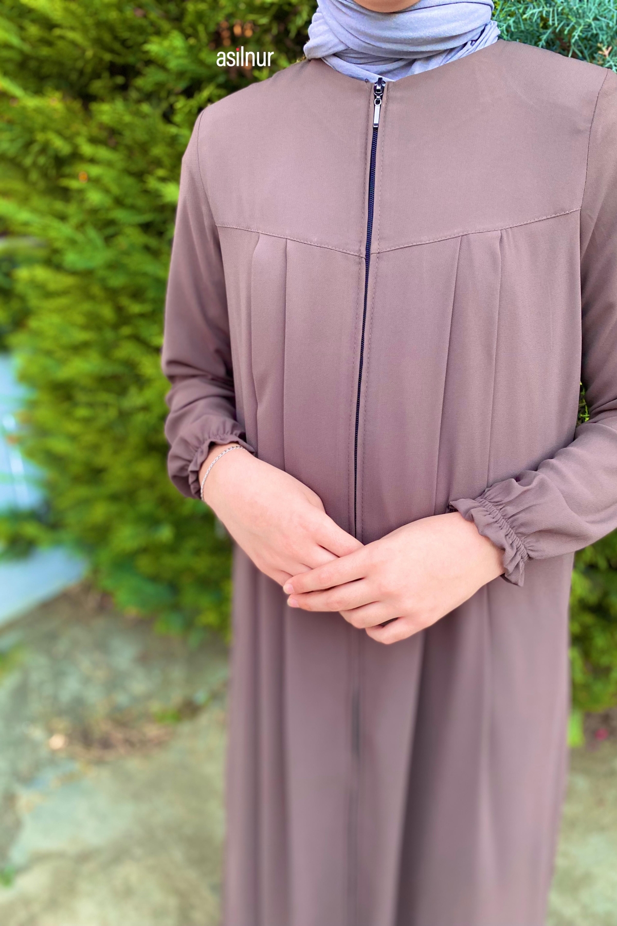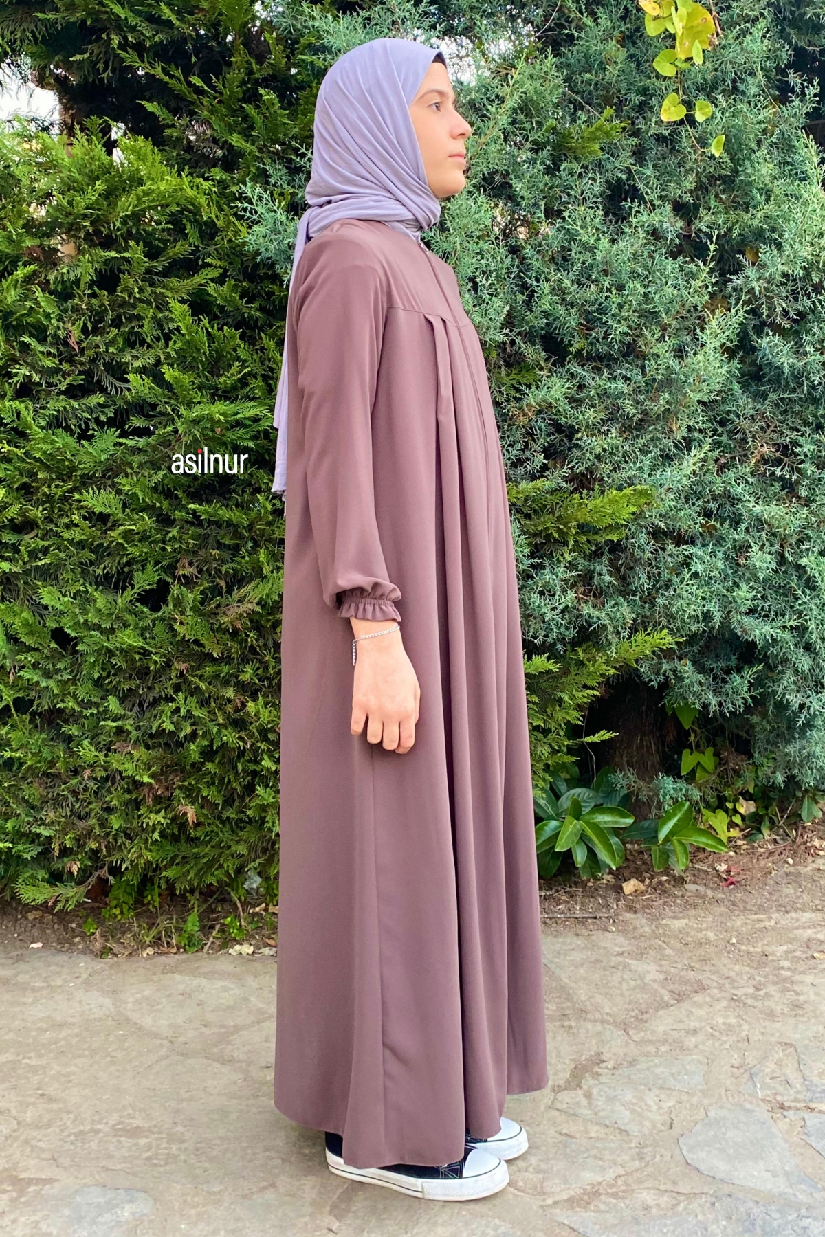 Pileli Çocuk Ferace, Rabia krep kumaşıyla üretilmiş, 11-15 yaş arası çocuklar için ideal bir tercihtir. Rahat kalıbı ve pile detaylarıyla hem hareket özgürlüğü sağlar hem de zarif bir görünüm sunar. Fermuar detayı sayesinde pratik bir kullanım imkânı sunan bu ferace, çocuklar ve gençler için şık ve kullanışlı bir seçenektir.