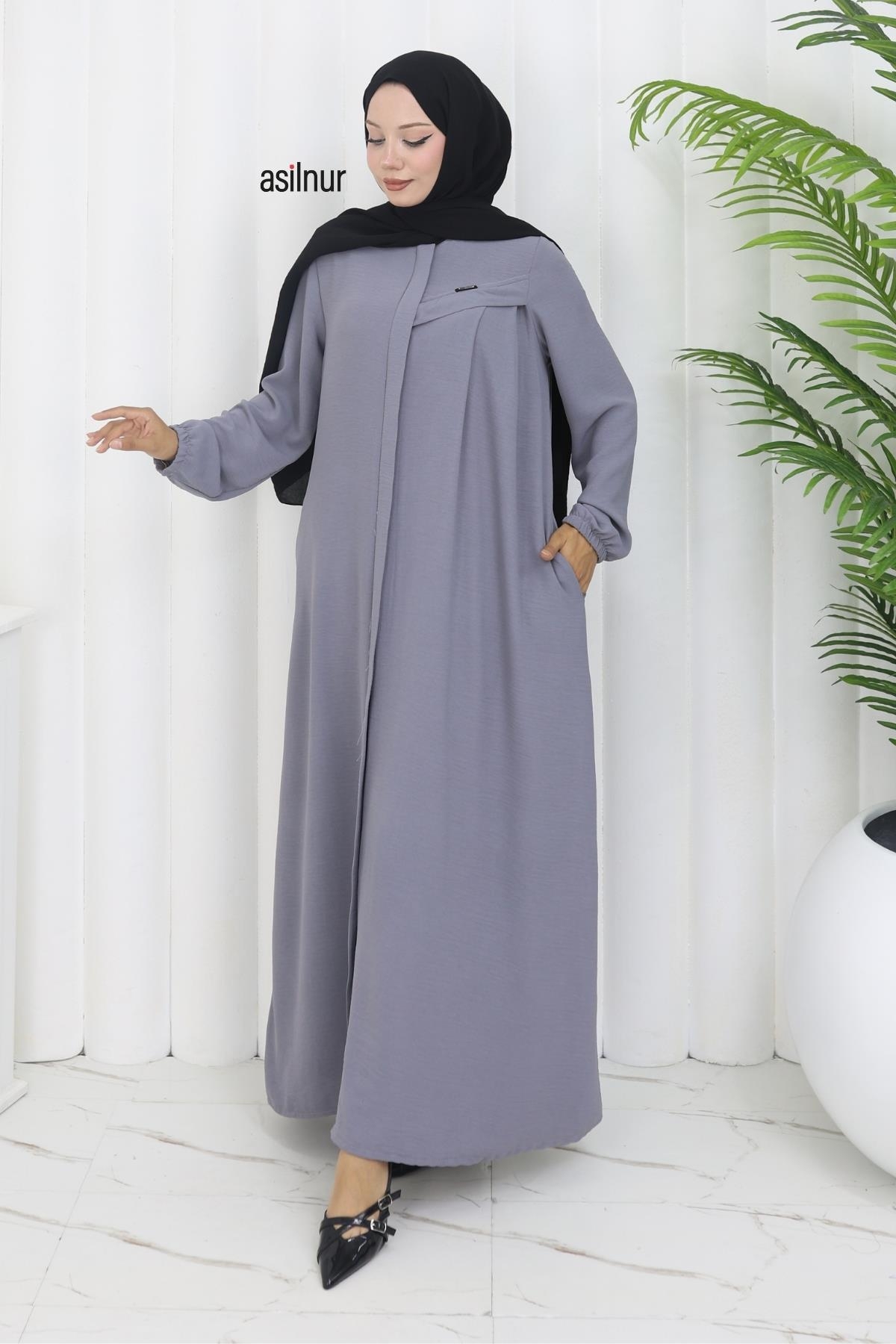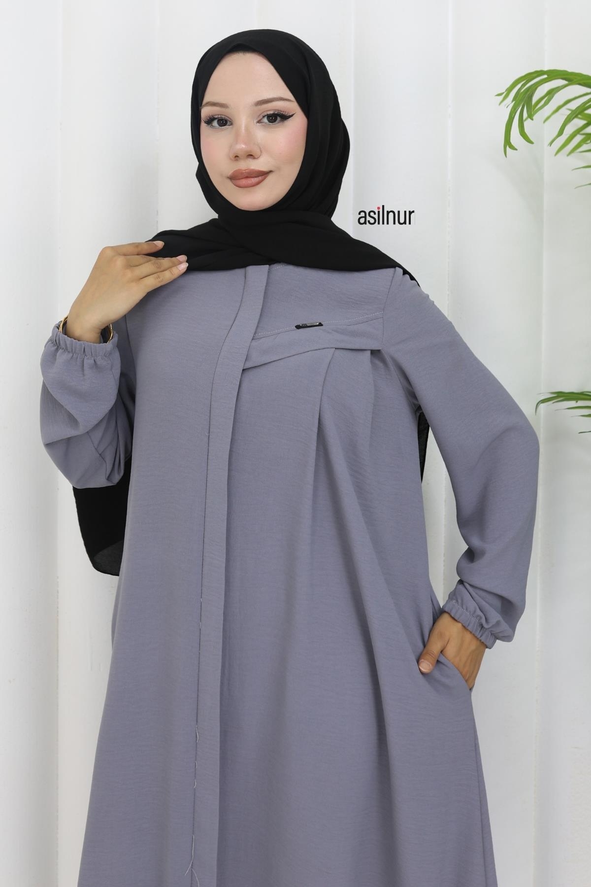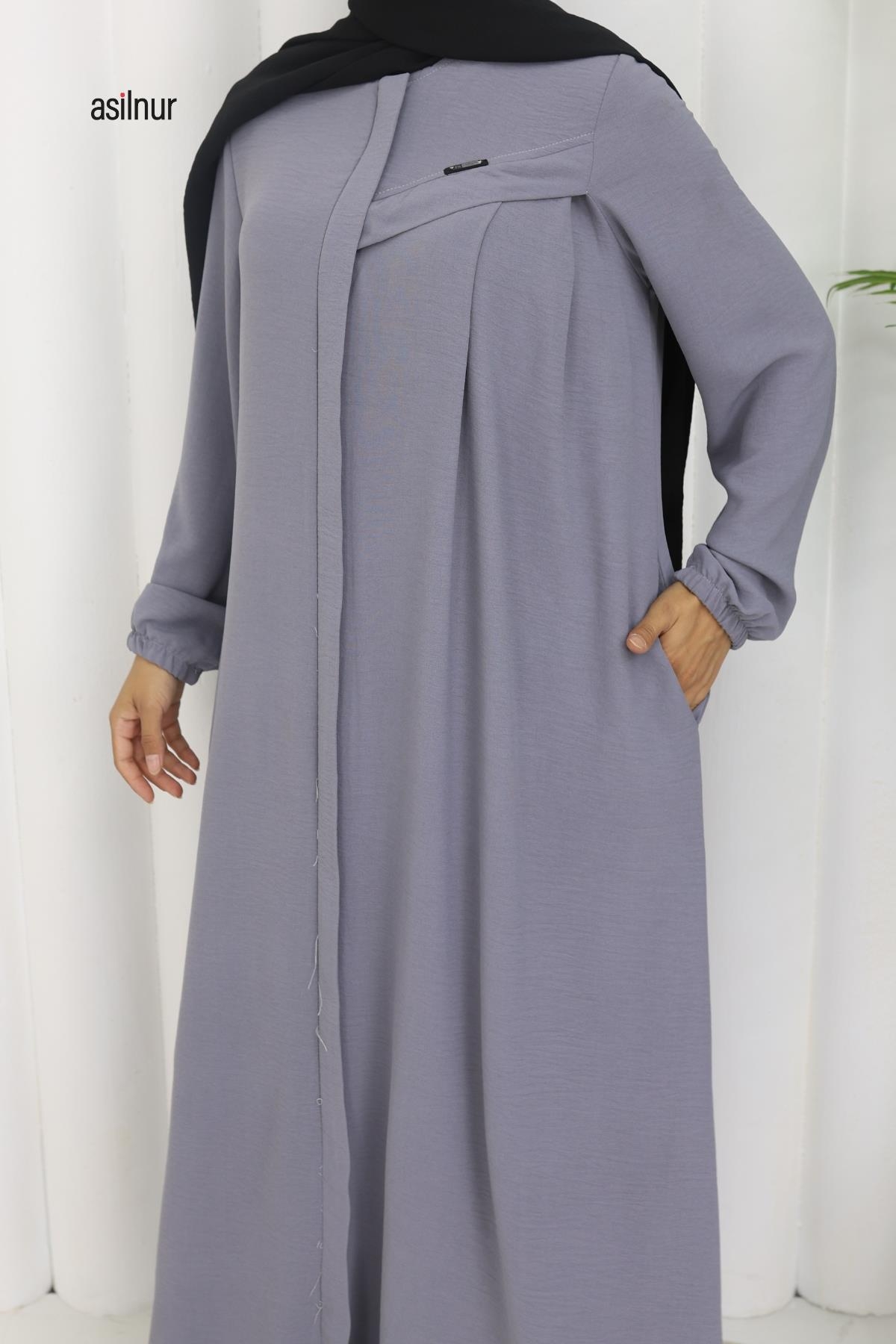Hafif ve dökümlü ayrobin kumaştan üretilen Sena Biyeli Ferace, rahat kalıbı ve şık detaylarıyla öne çıkar. Lastikli kolları, fermuarlı önü ve cepli tasarımıyla günlük kullanıma uygundur. Biyeli dikişleriyle zarif bir görünüm sunar.