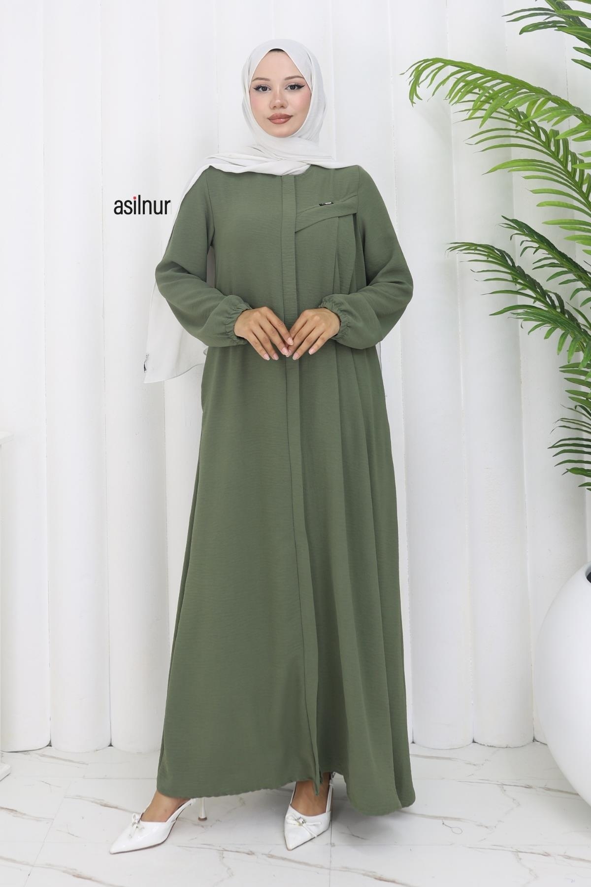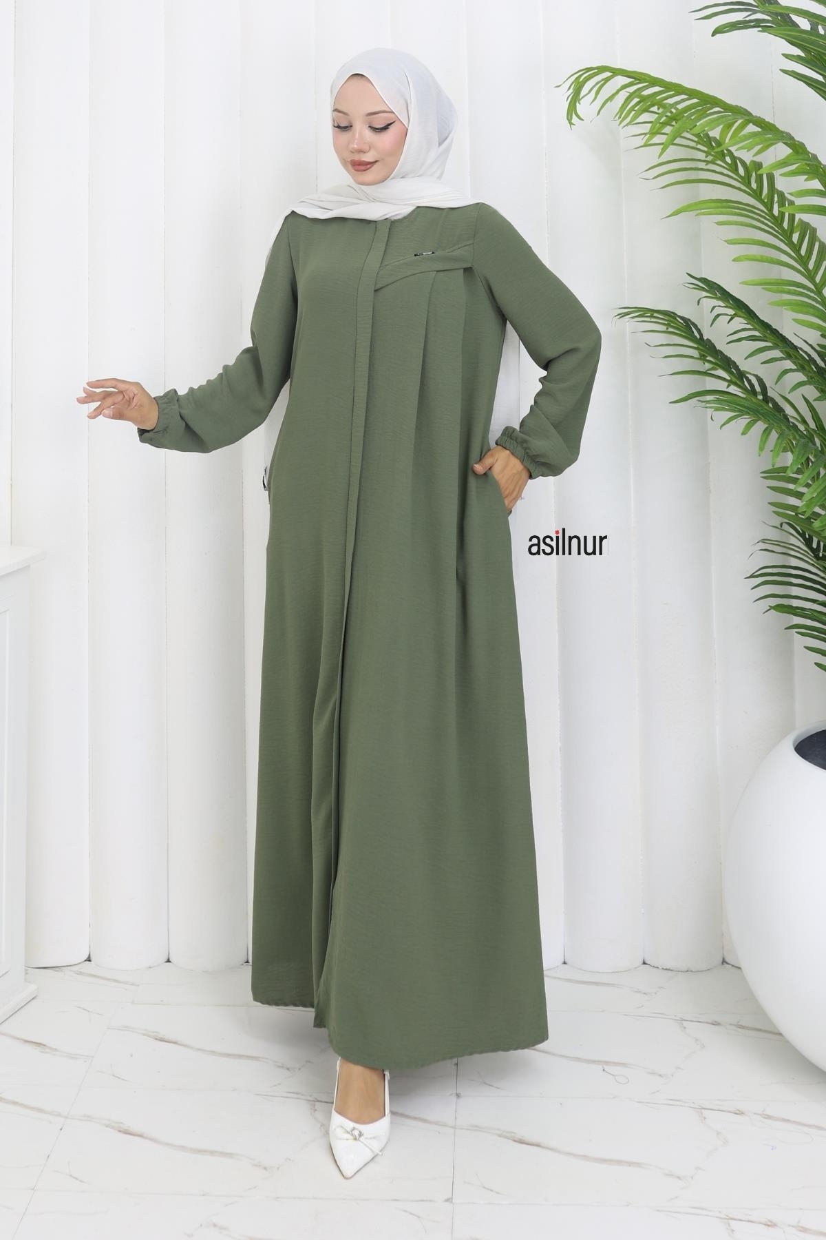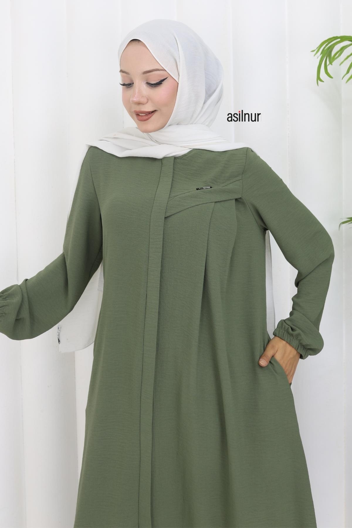 Hafif ve dökümlü ayrobin kumaştan üretilen Dila Ayrobin Biyeli Ferace, rahat kalıbı ve şık detaylarıyla öne çıkar. Lastikli kolları, fermuarlı önü ve cepli tasarımıyla günlük kullanıma uygundur. Biyeli dikişleriyle zarif bir görünüm sunar.