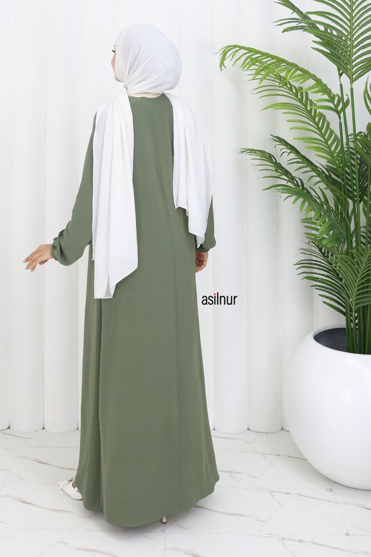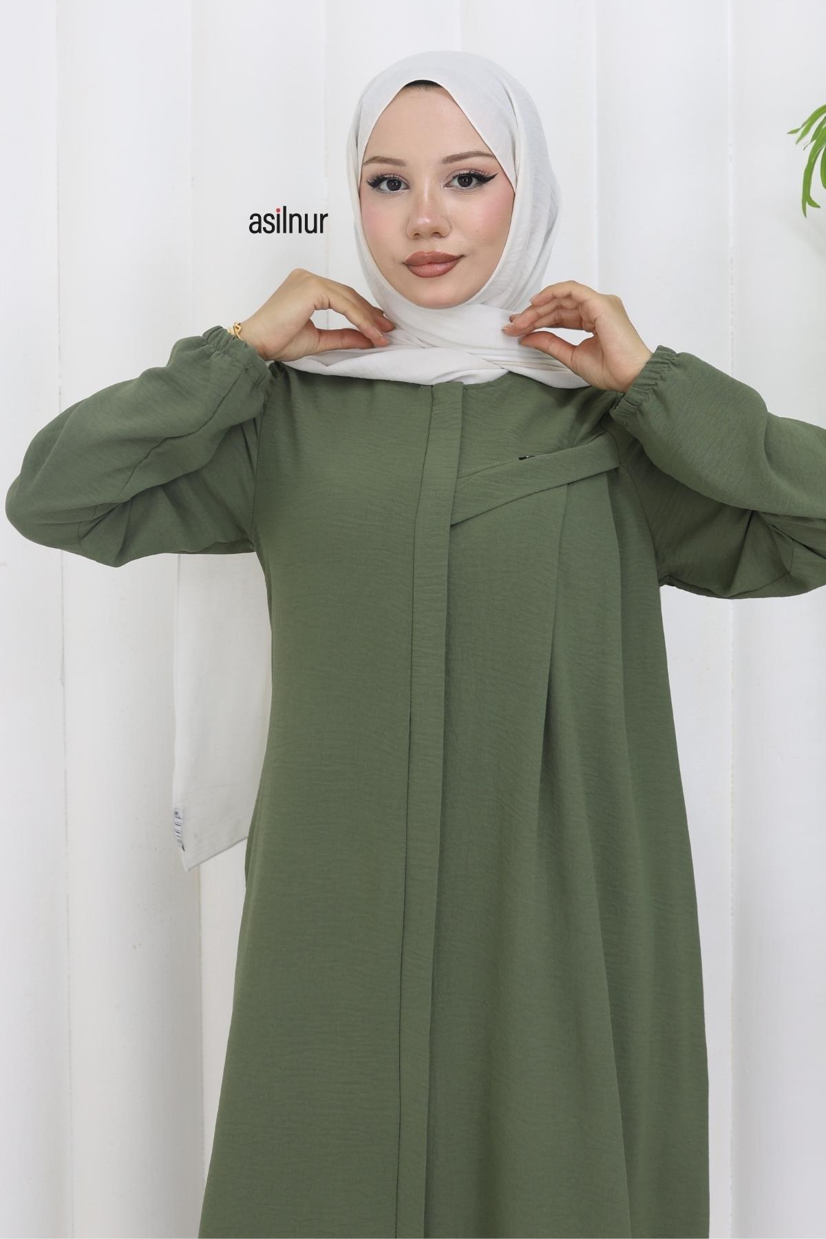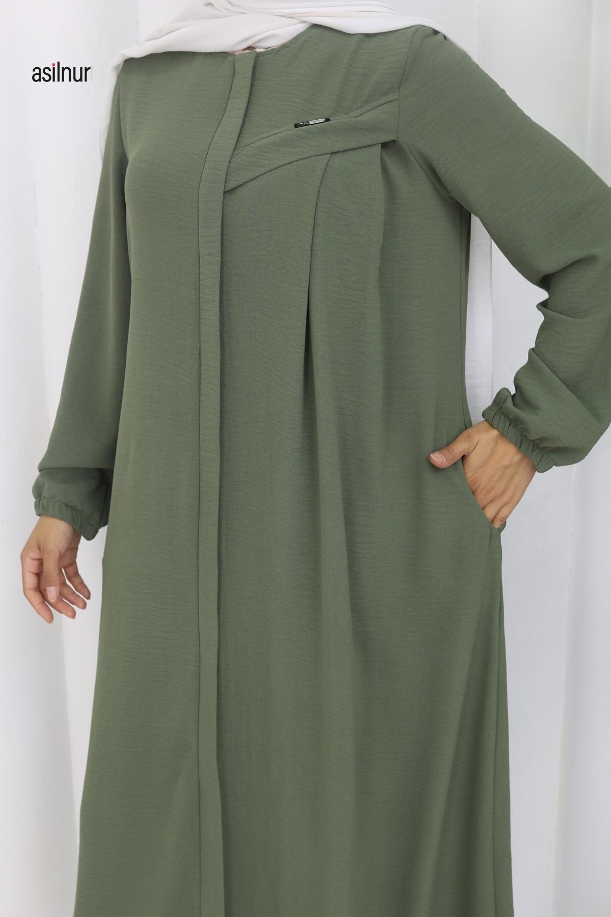 Hafif ve dökümlü ayrobin kumaştan üretilen Dila Ayrobin Biyeli Ferace, rahat kalıbı ve şık detaylarıyla öne çıkar. Lastikli kolları, fermuarlı önü ve cepli tasarımıyla günlük kullanıma uygundur. Biyeli dikişleriyle zarif bir görünüm sunar.
