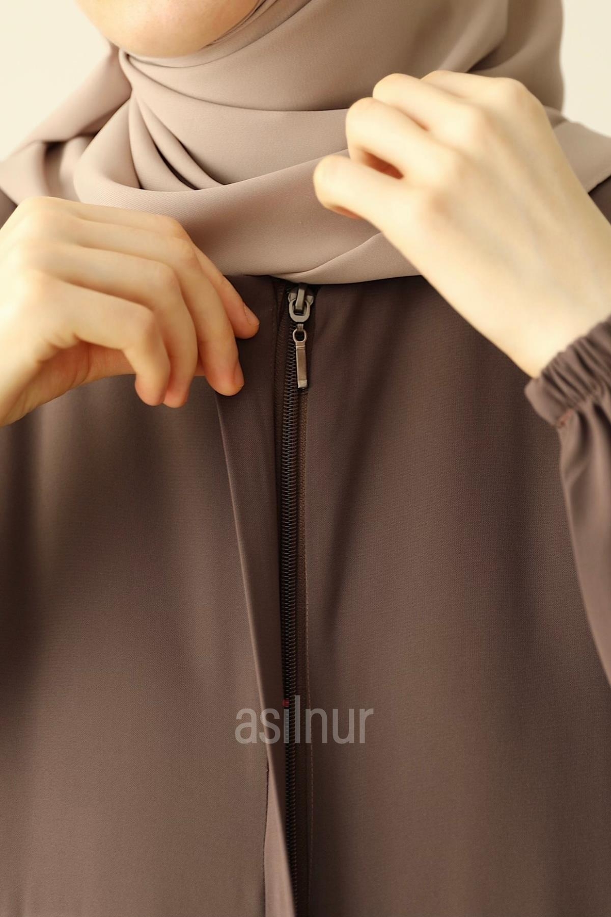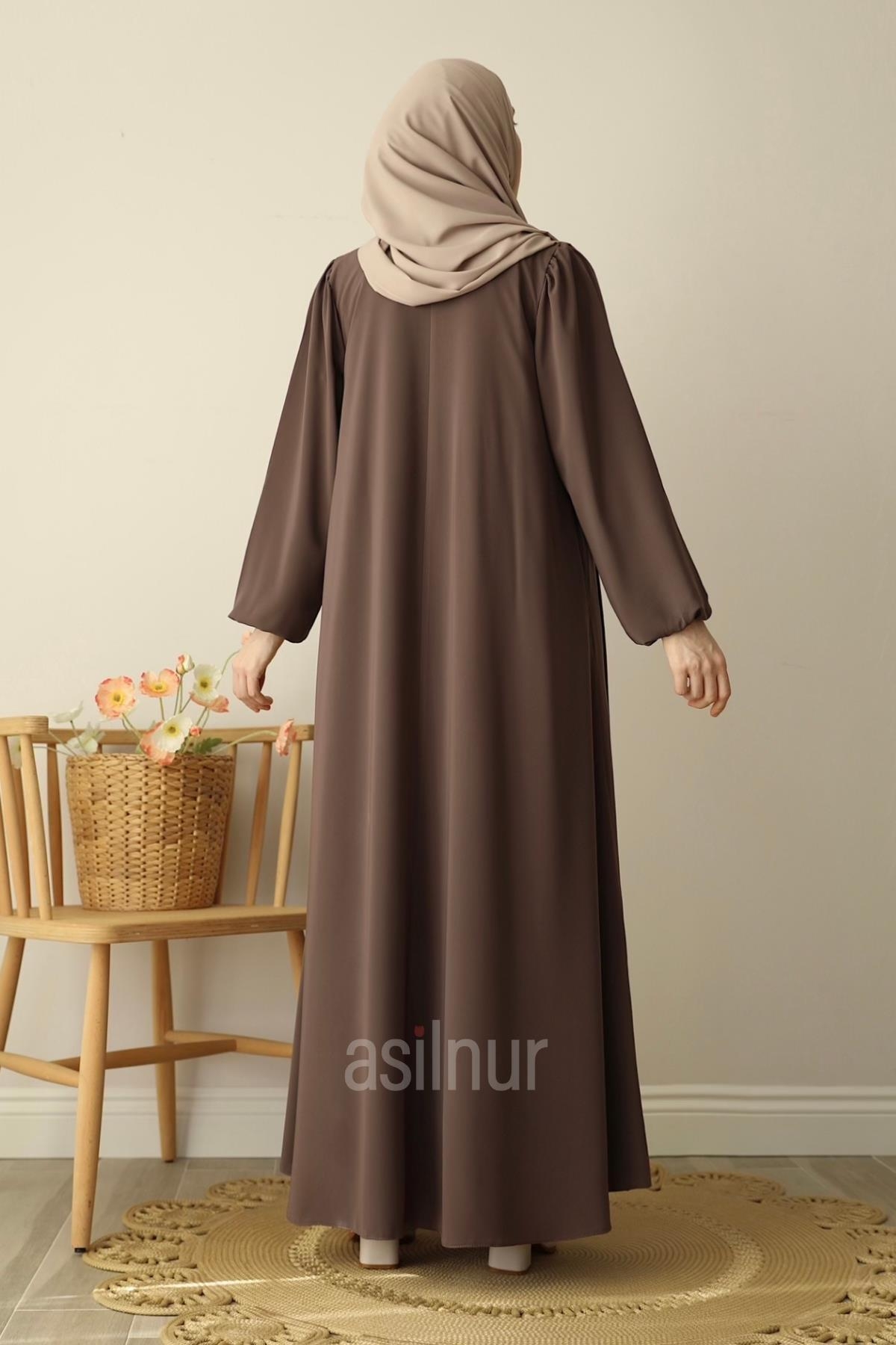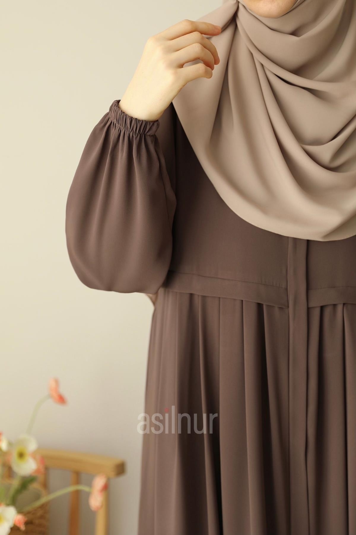 Hareket özgürlüğü ve şıklığı bir arada sunan Ebrar Piliseli Ferace, zarif pilise detaylarıyla ve kaliteli Medine İpeği kumaşıyla dört mevsim kullanım için idealdir. Rahat kalıbı gün boyu konfor sağlar. Dökümlü ve hafiftir. Kullanışlılığı artıran cepli tasarımı, fermuarlı yapısı, bisiklet yaka detayı ve lastikli kolları ile bu piliseli ferace, hem günlük kullanımda hem de özel anlarda konforlu şıklığınızı tamamlayacak.