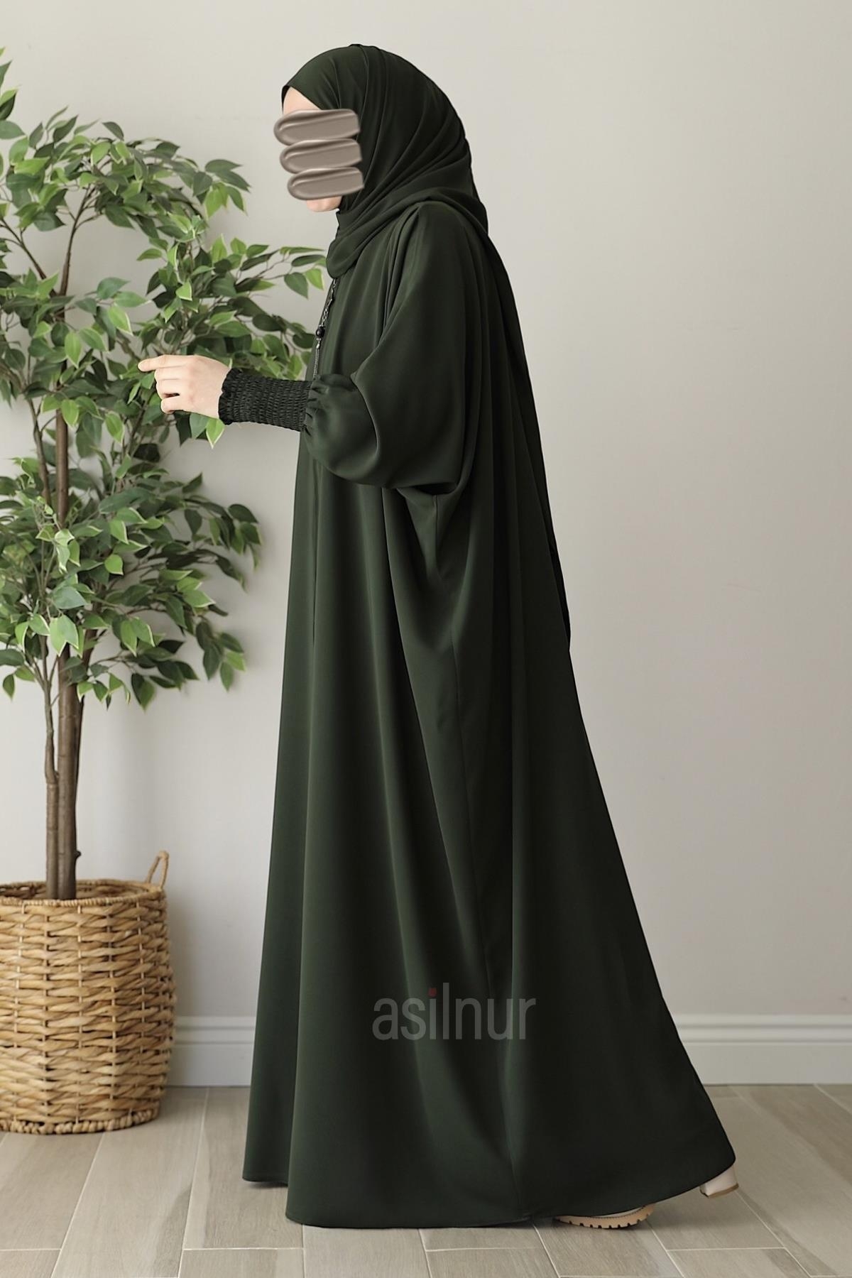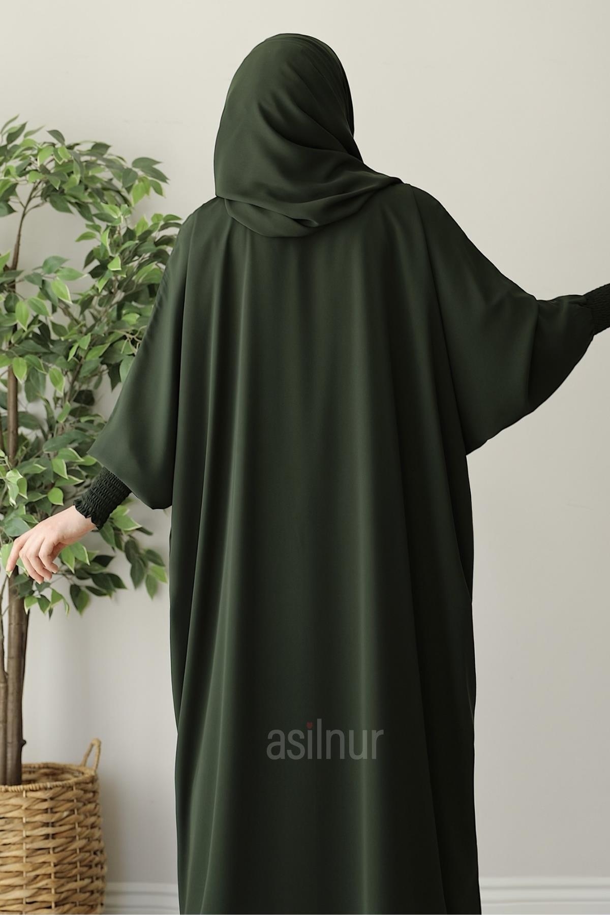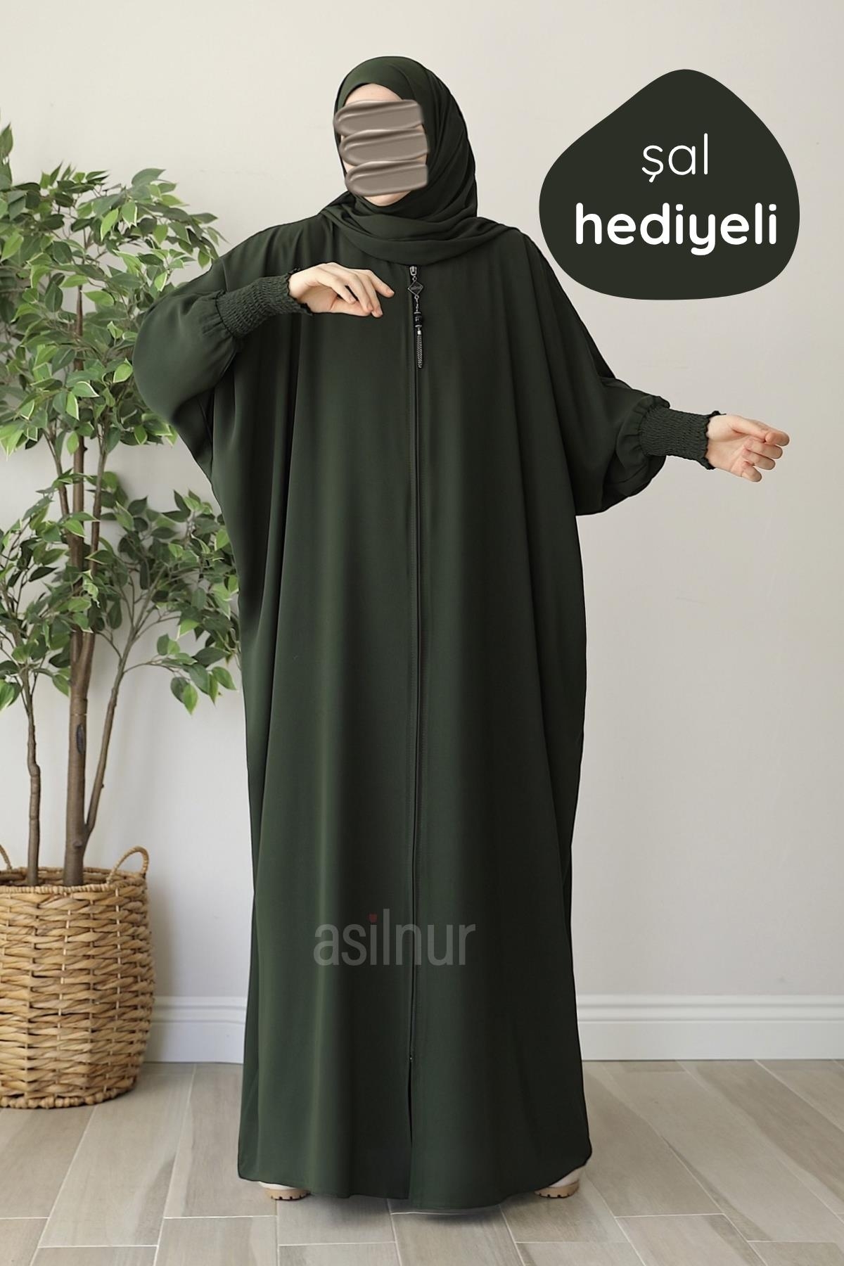 Ebru Yarasa Kollu Ferace Şal Hediyeli Takım Haki