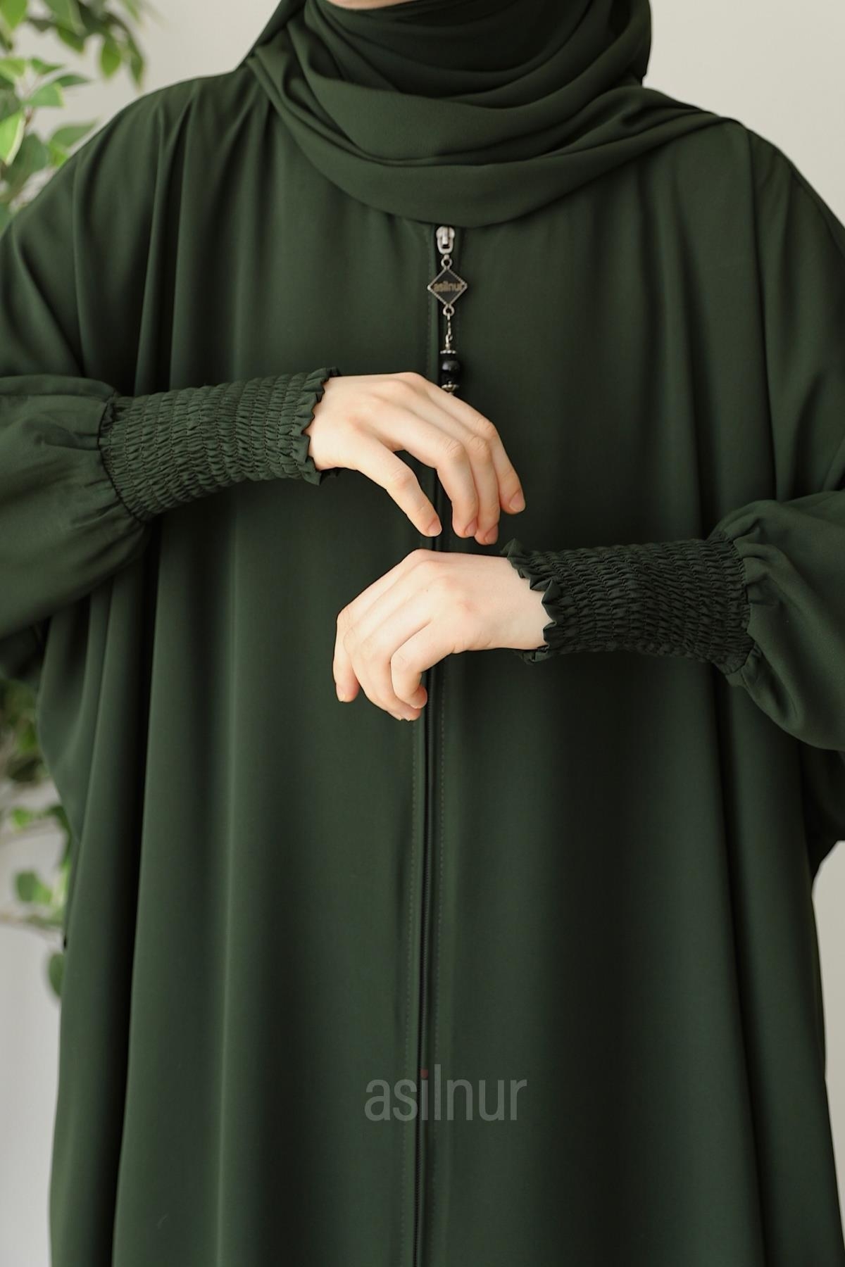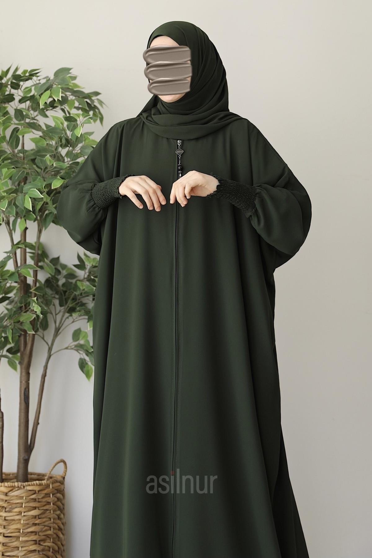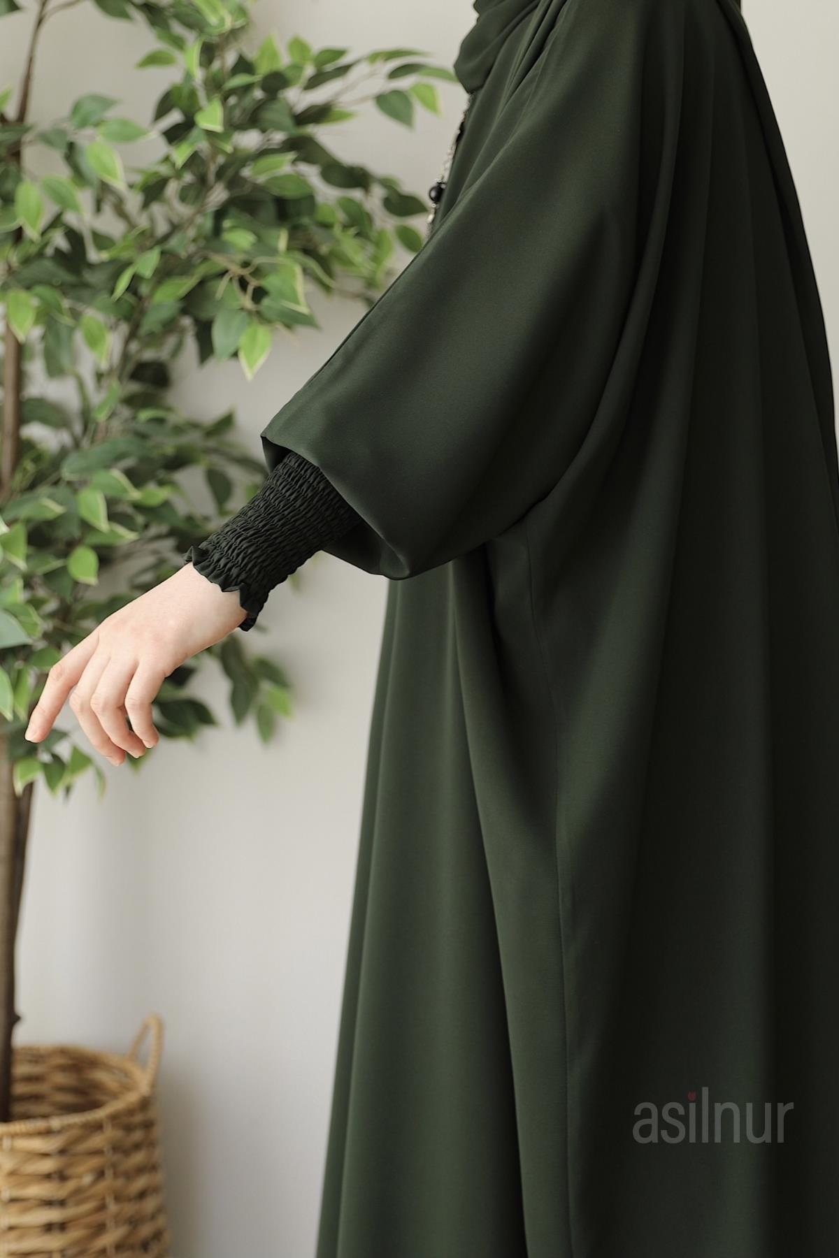 Ebru Yarasa Kollu Ferace Şal Hediyeli Takım Haki