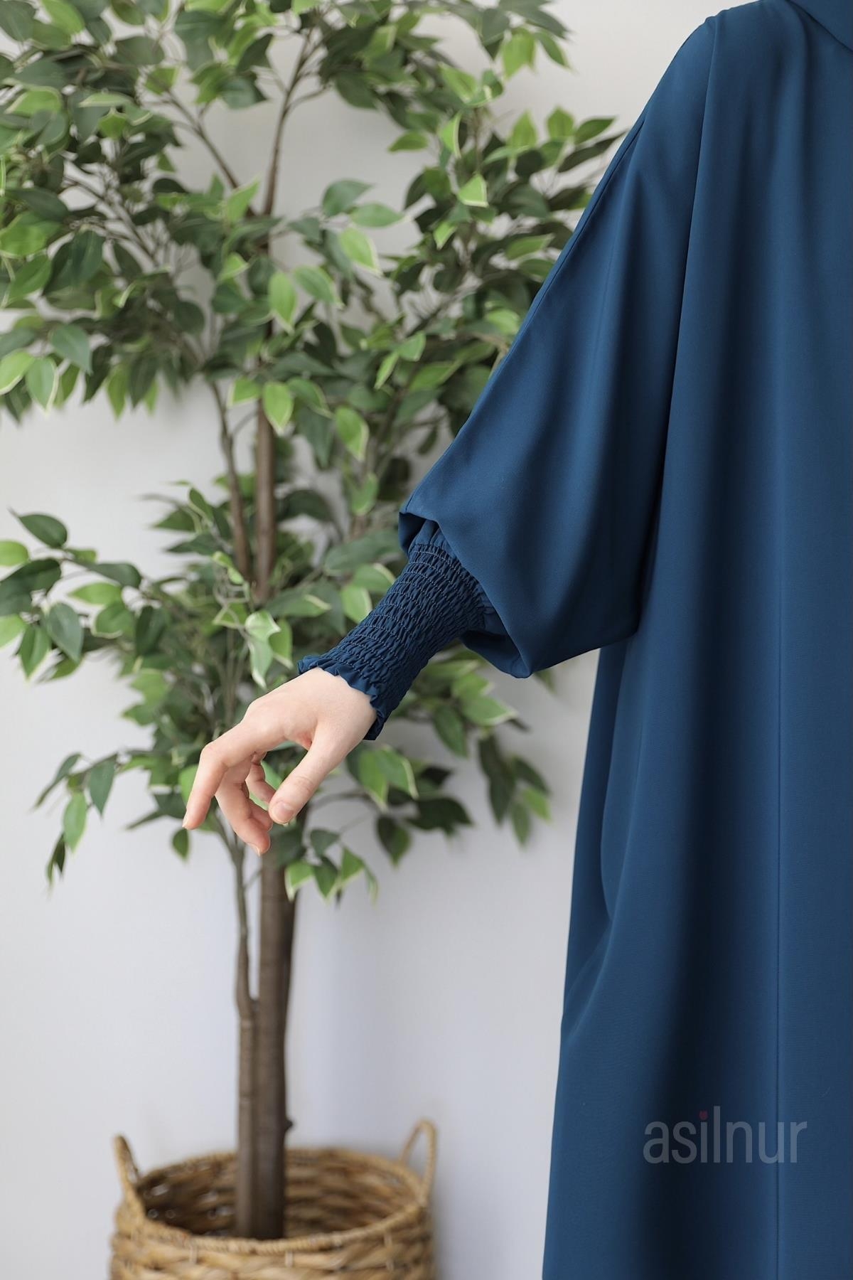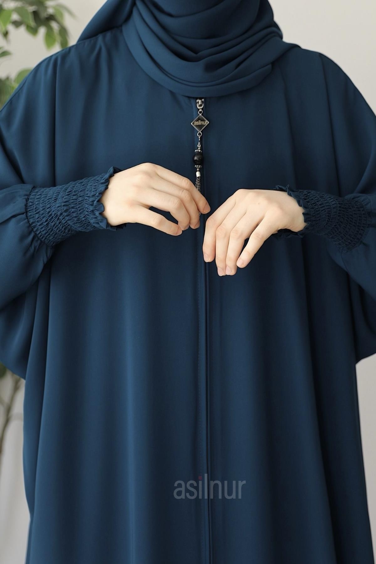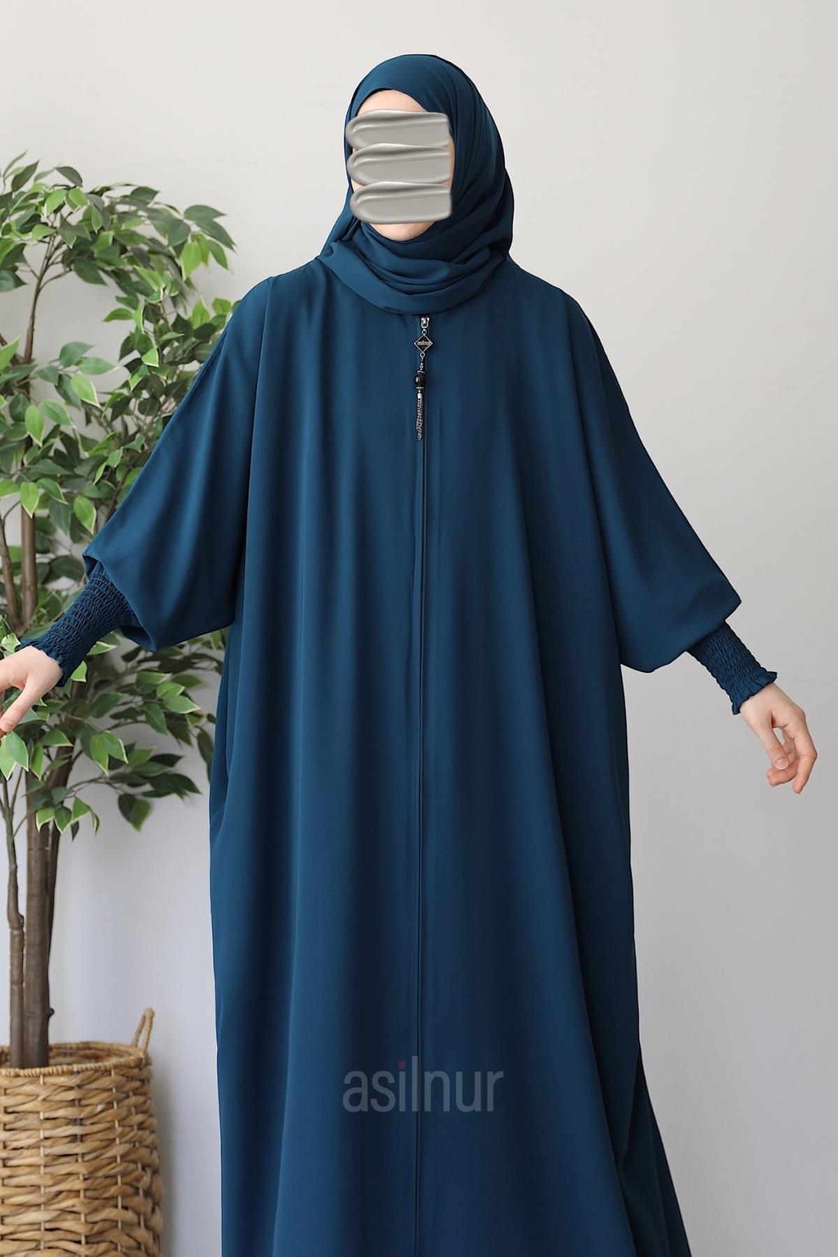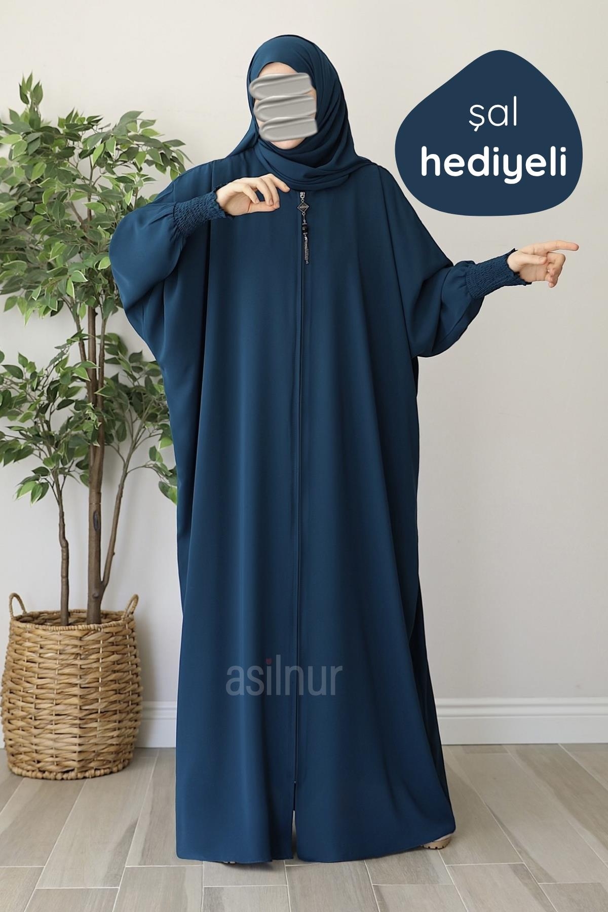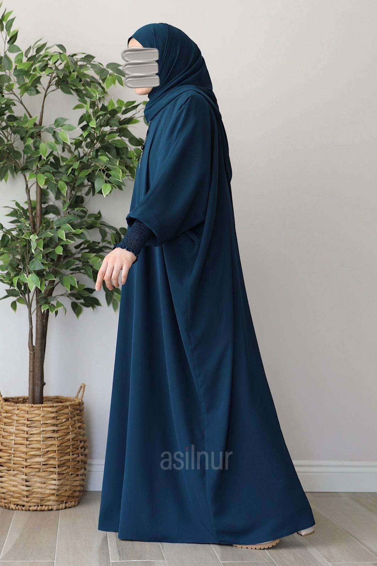 Ebru Yarasa Kollu Ferace Şal Hediyeli Takım Petrol Mavisi
