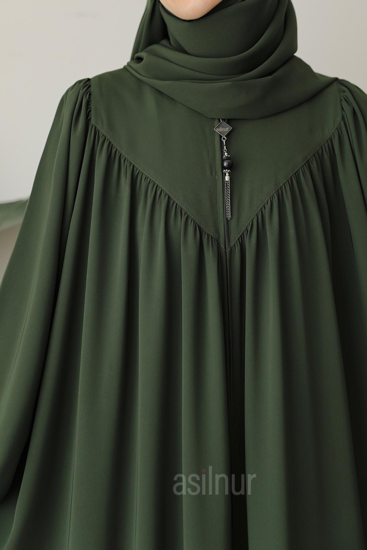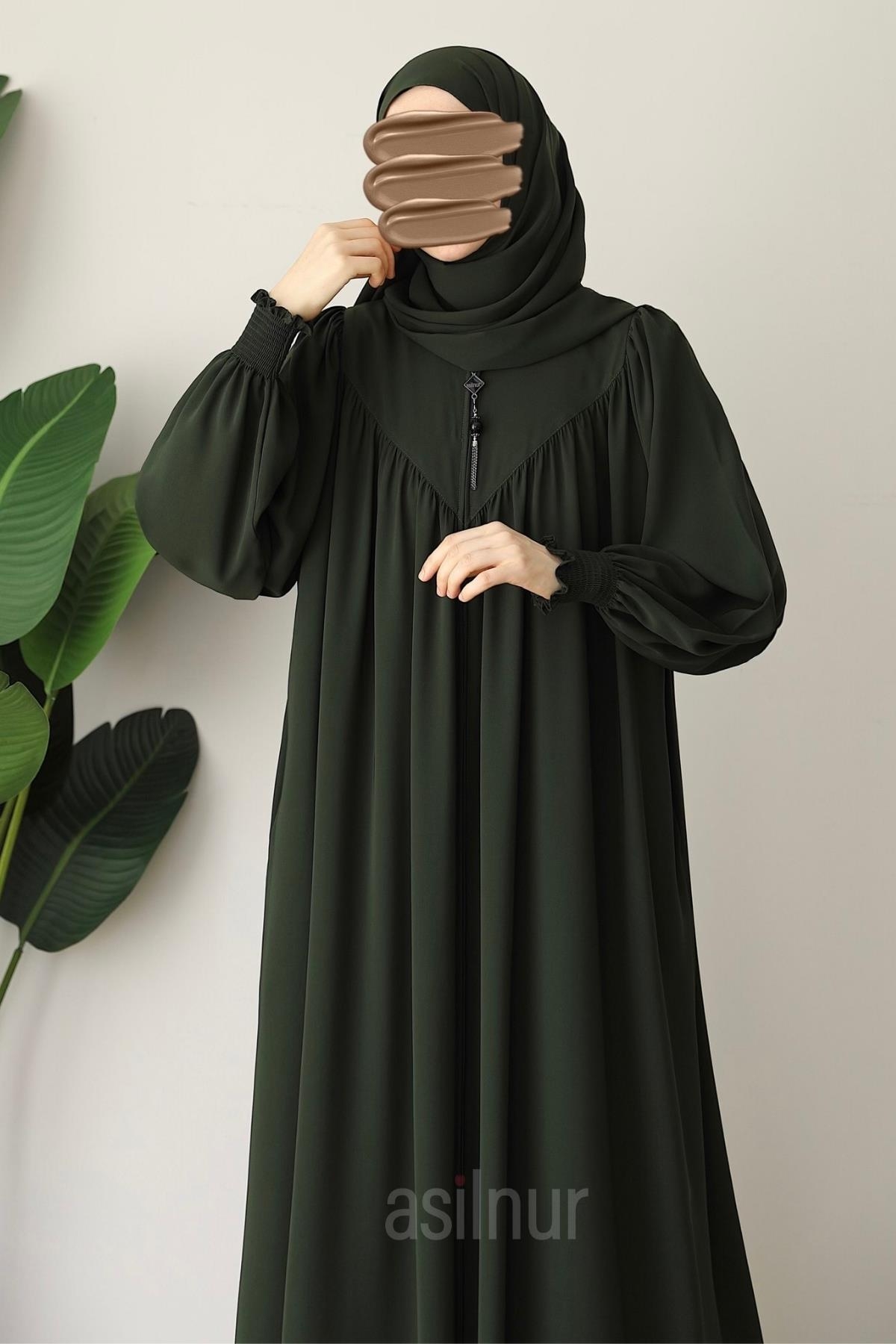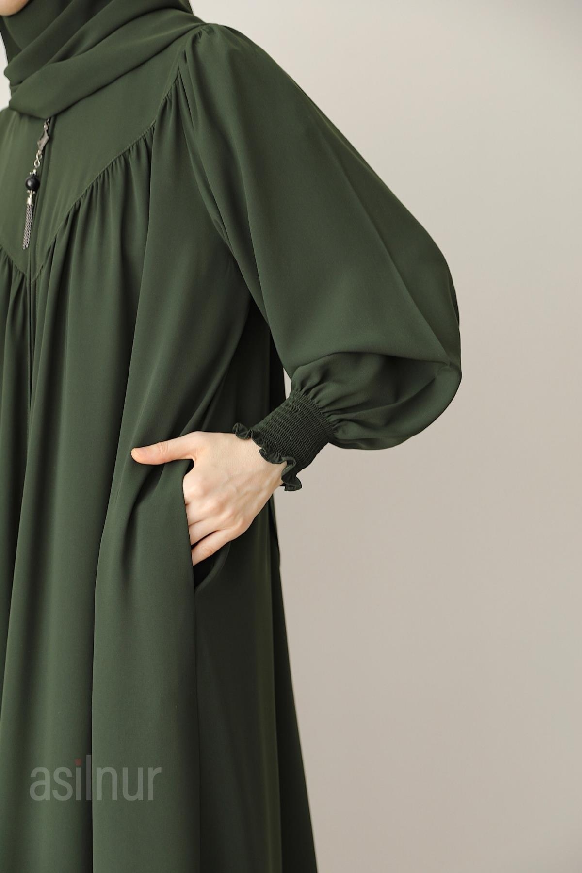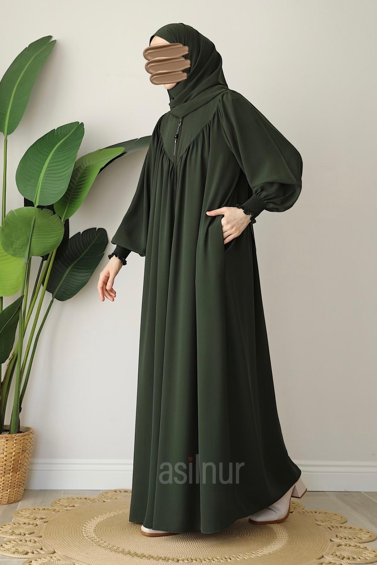 Elif Ferace Şallı Takım, 1. sınıf Mısır Medine ipeğinden üretilmiştir. Kol kısmında yer alan gipe lastik detayı sayesinde hem rahat kullanım sunar hem de modern bir görünüm kazandırır. Fermuarlı yapısıyla pratik giyilip çıkarılabilir. Yan cepleriyle kullanışlıdır. Takımın içinde yer alan şal, feraceyle tam uyumlu olup hediye olarak gönderilmektedir.