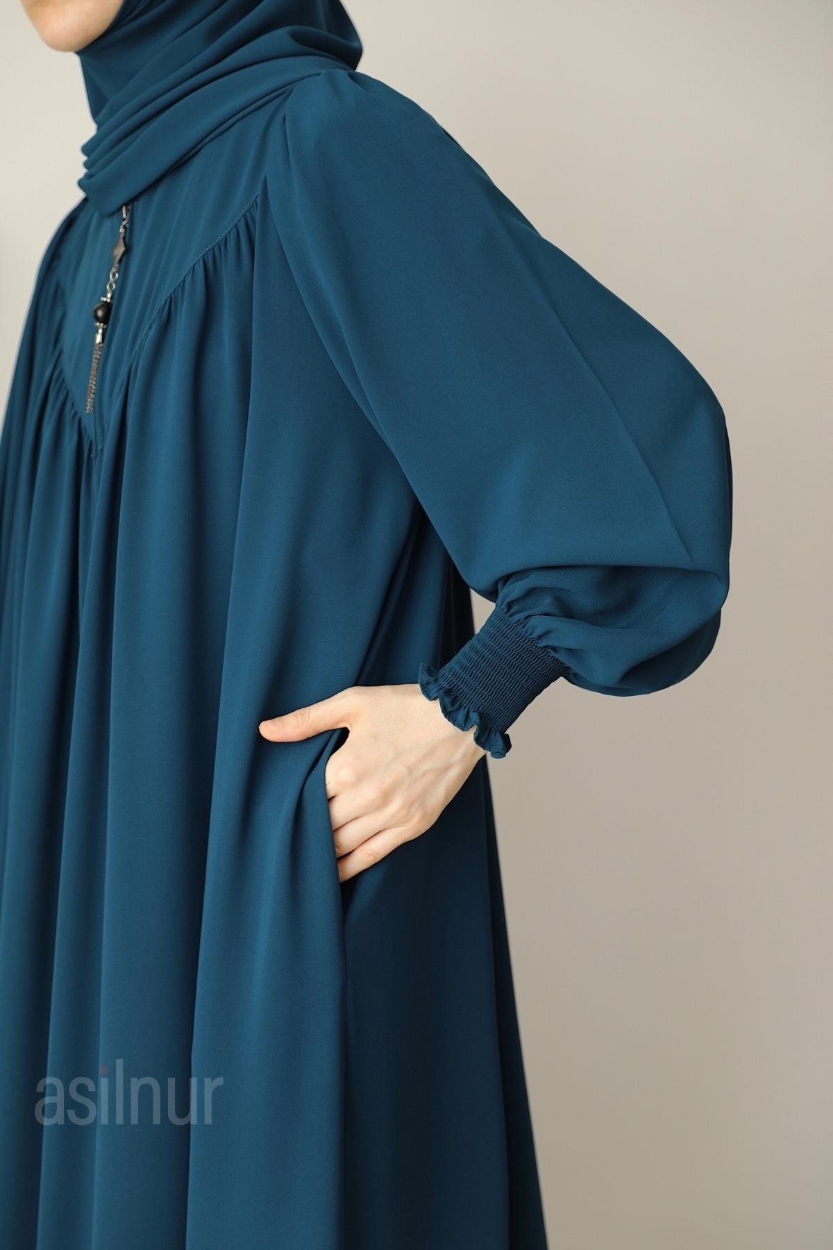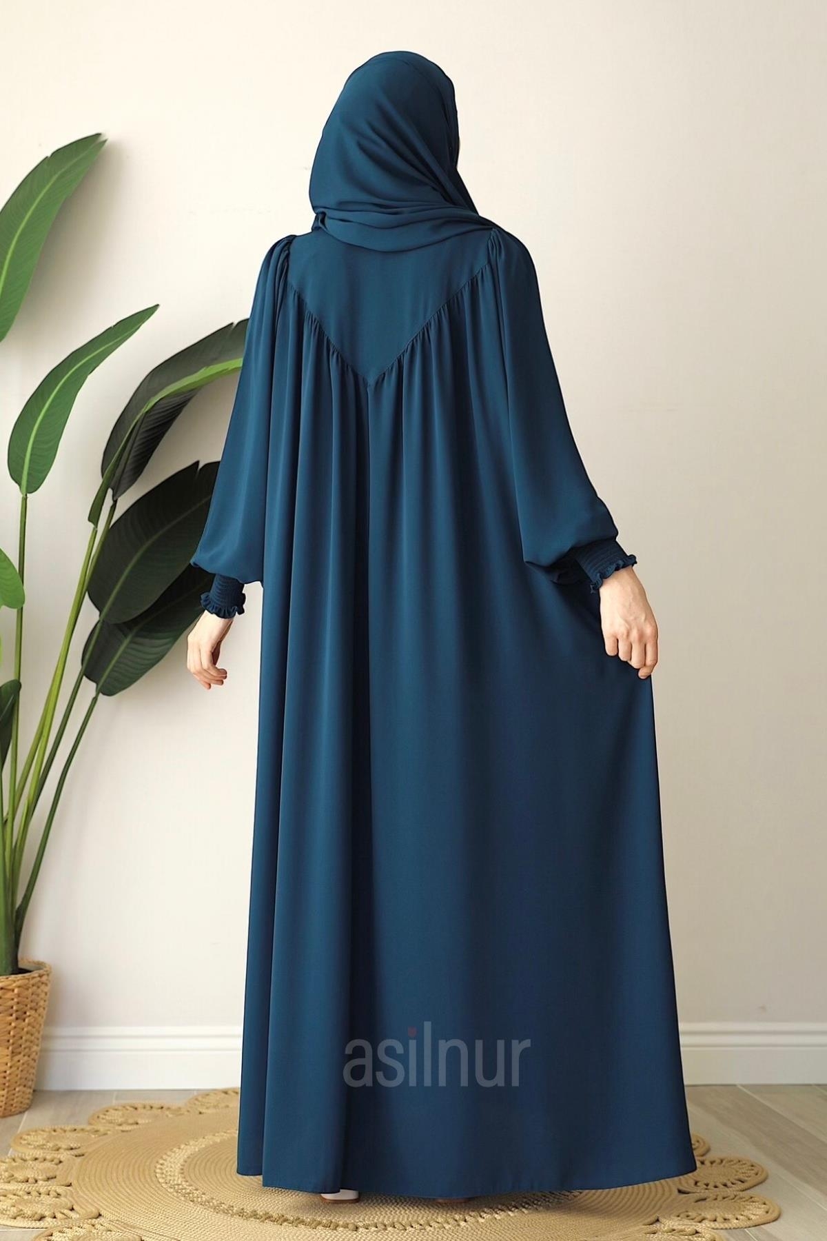 Elif Ferace Şal Hediyeli Takım Petrol Mavisi
