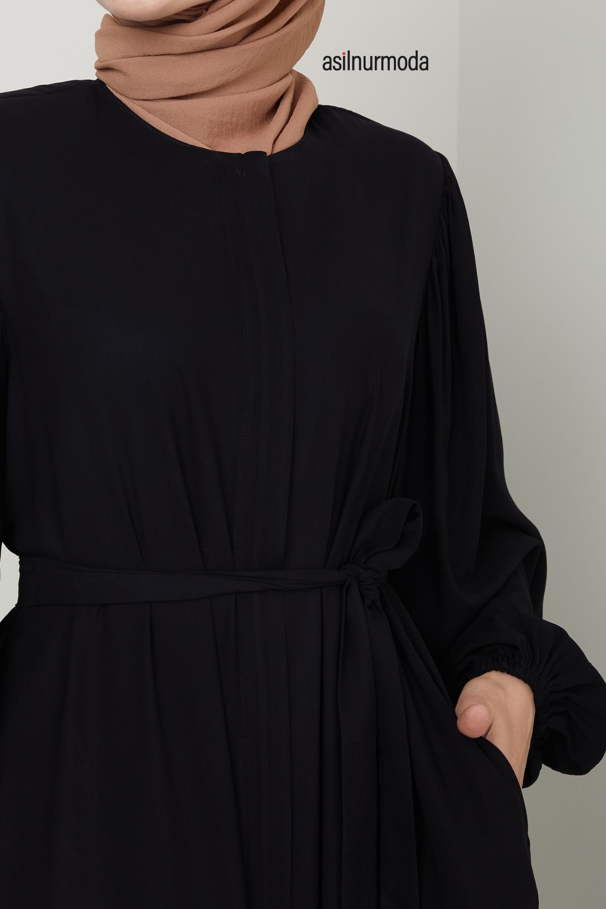 Hale Omuz Pileli Balon Kol Ferace Siyah