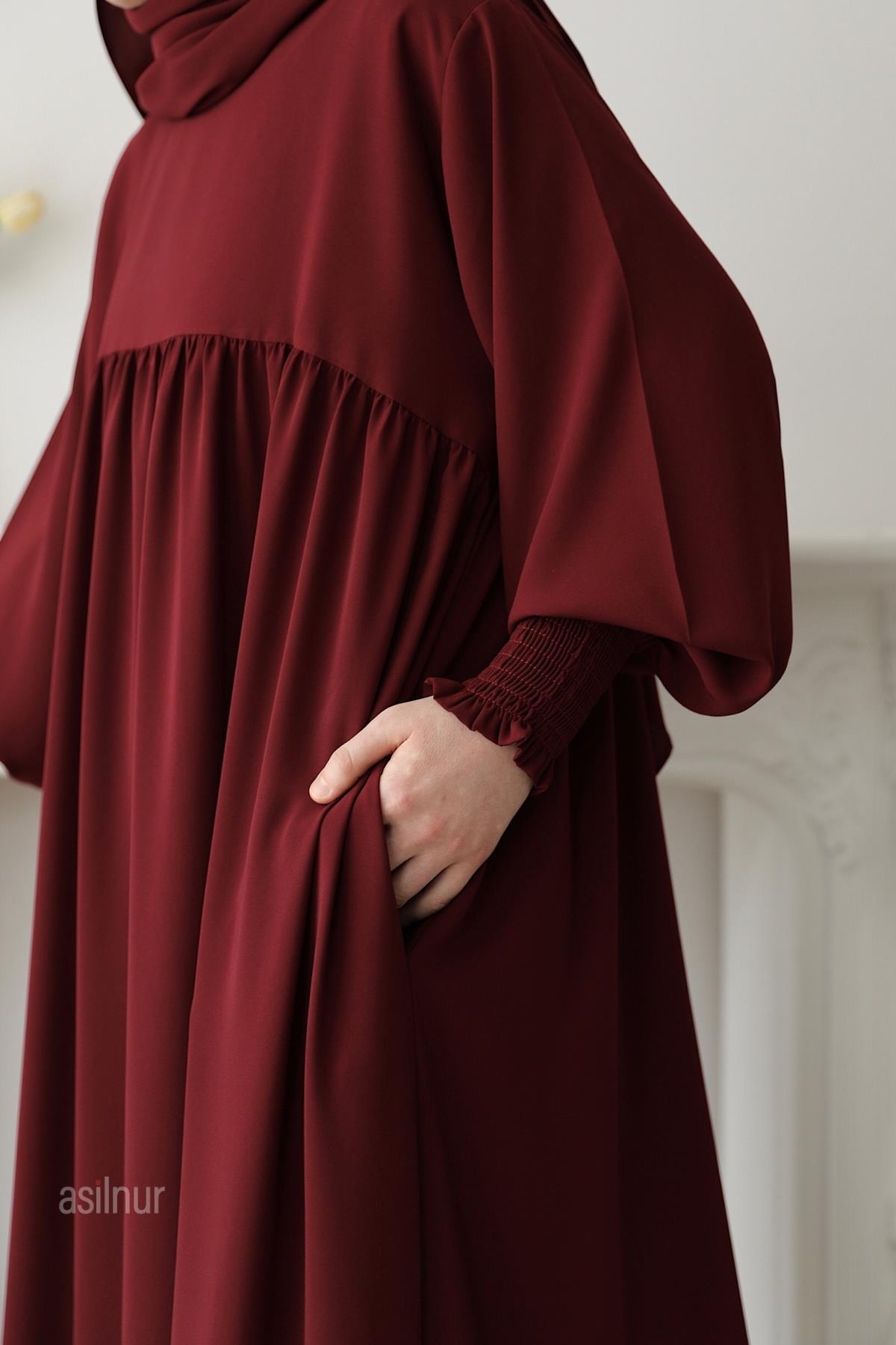 Hira Gölgeli Sufle Ferace Takım Bordo