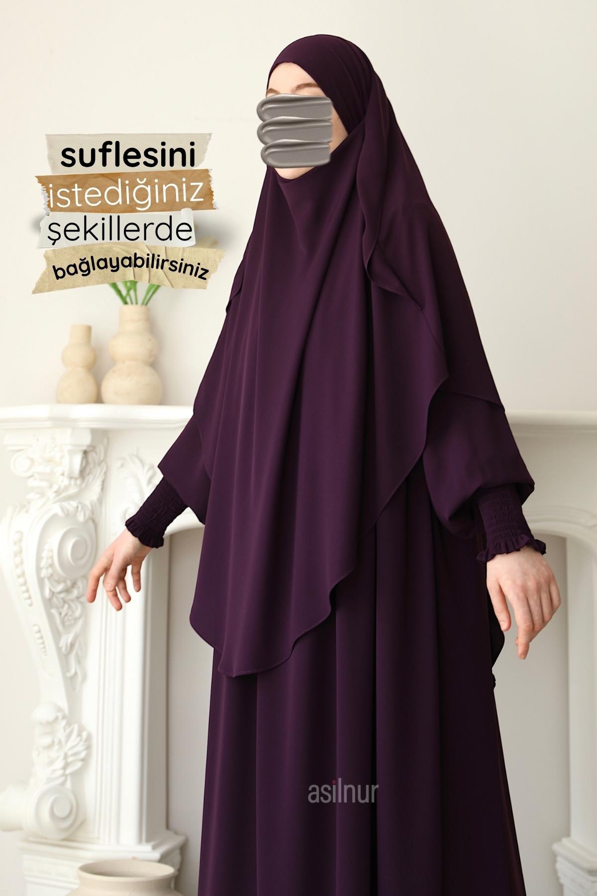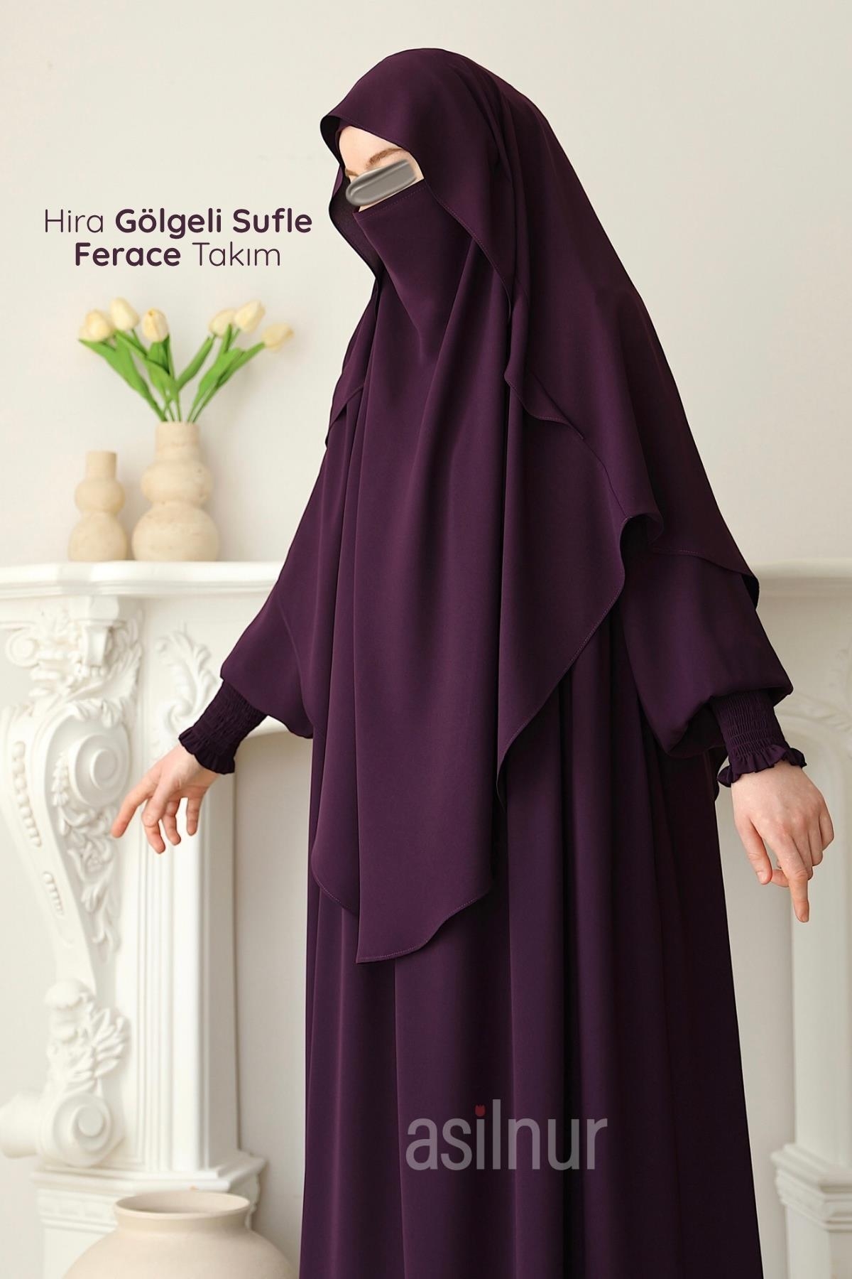 Hira Gölgeli Sufle Ferace Takım Mürdüm
