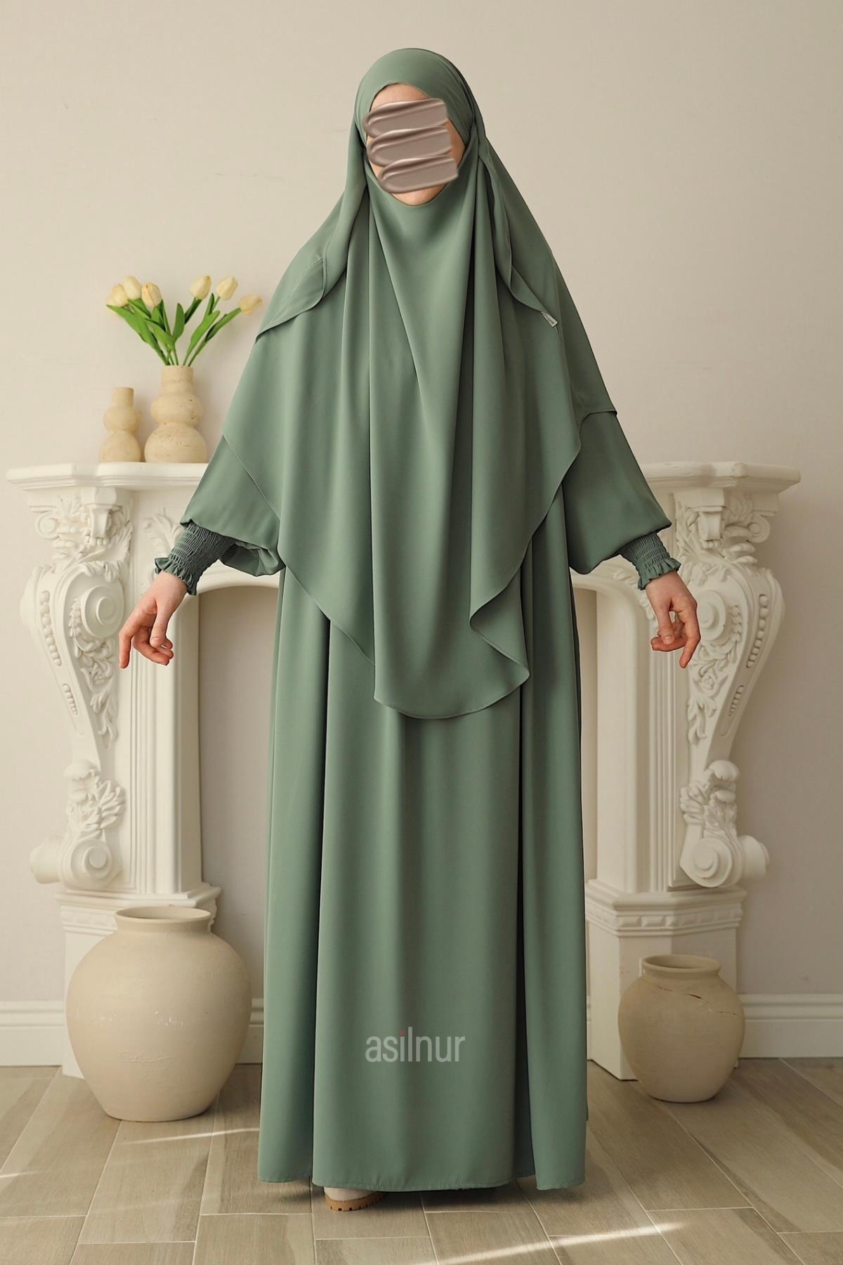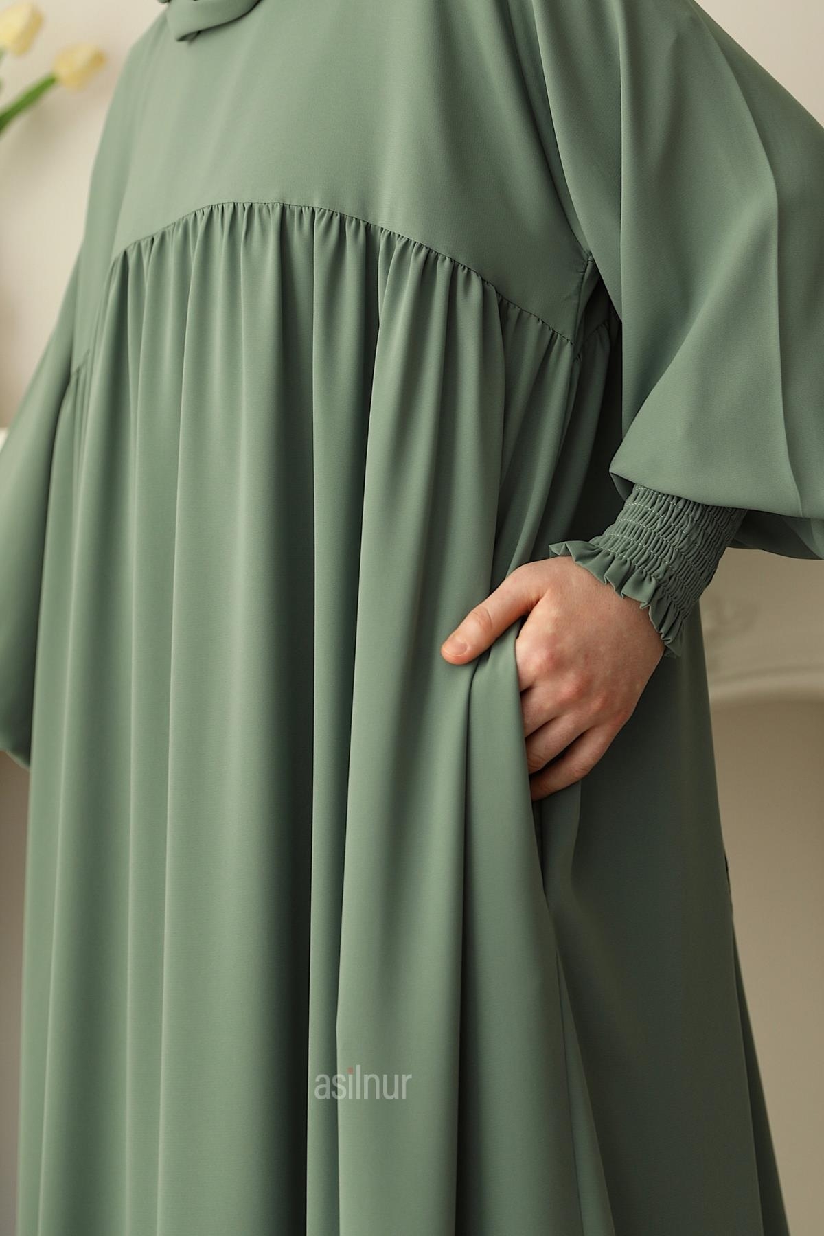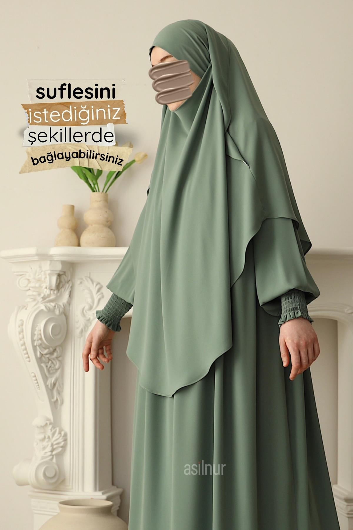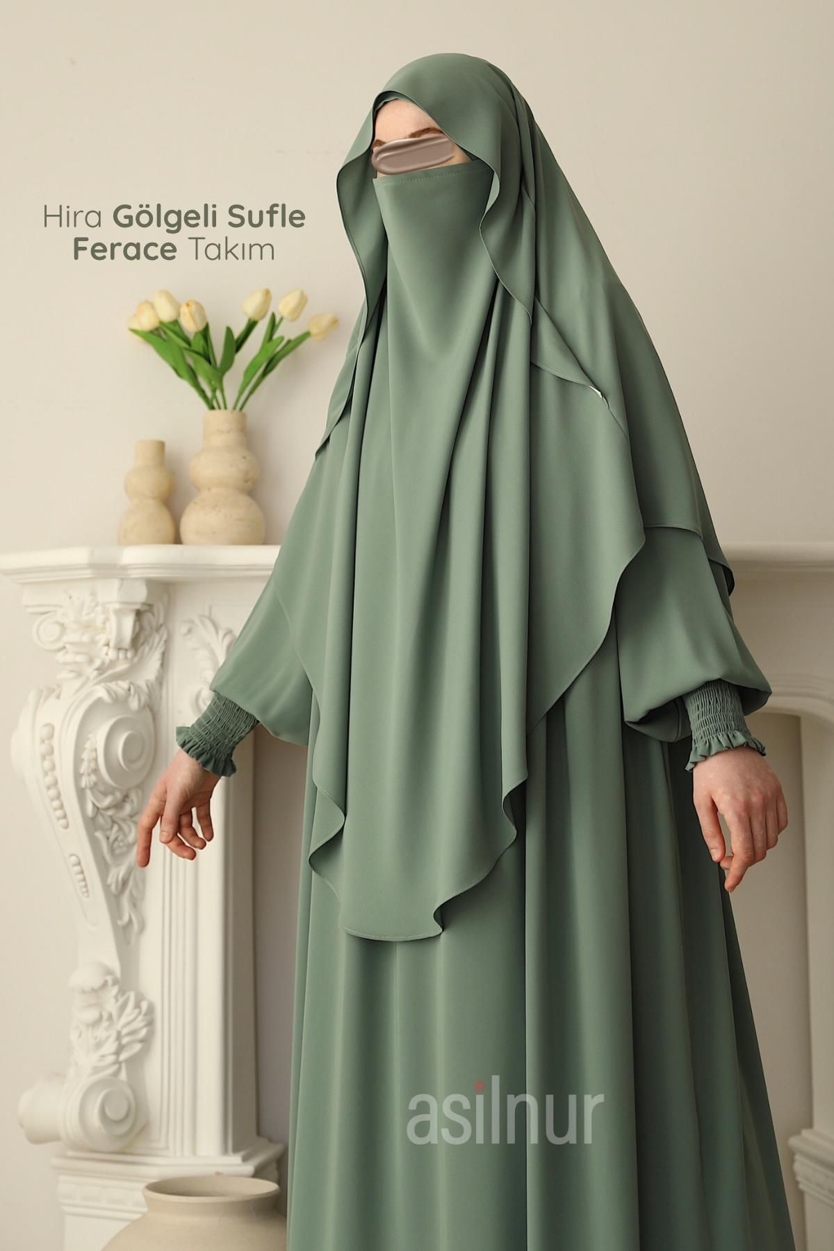 Hira Gölgeli Sufle Ferace Takım Su Yeşili