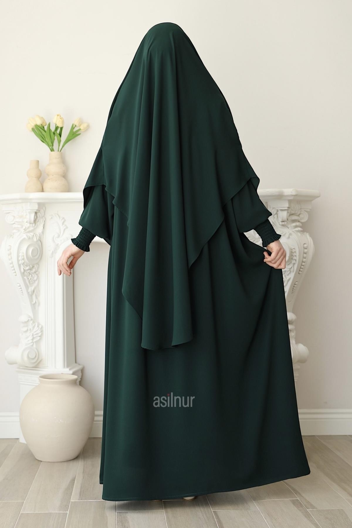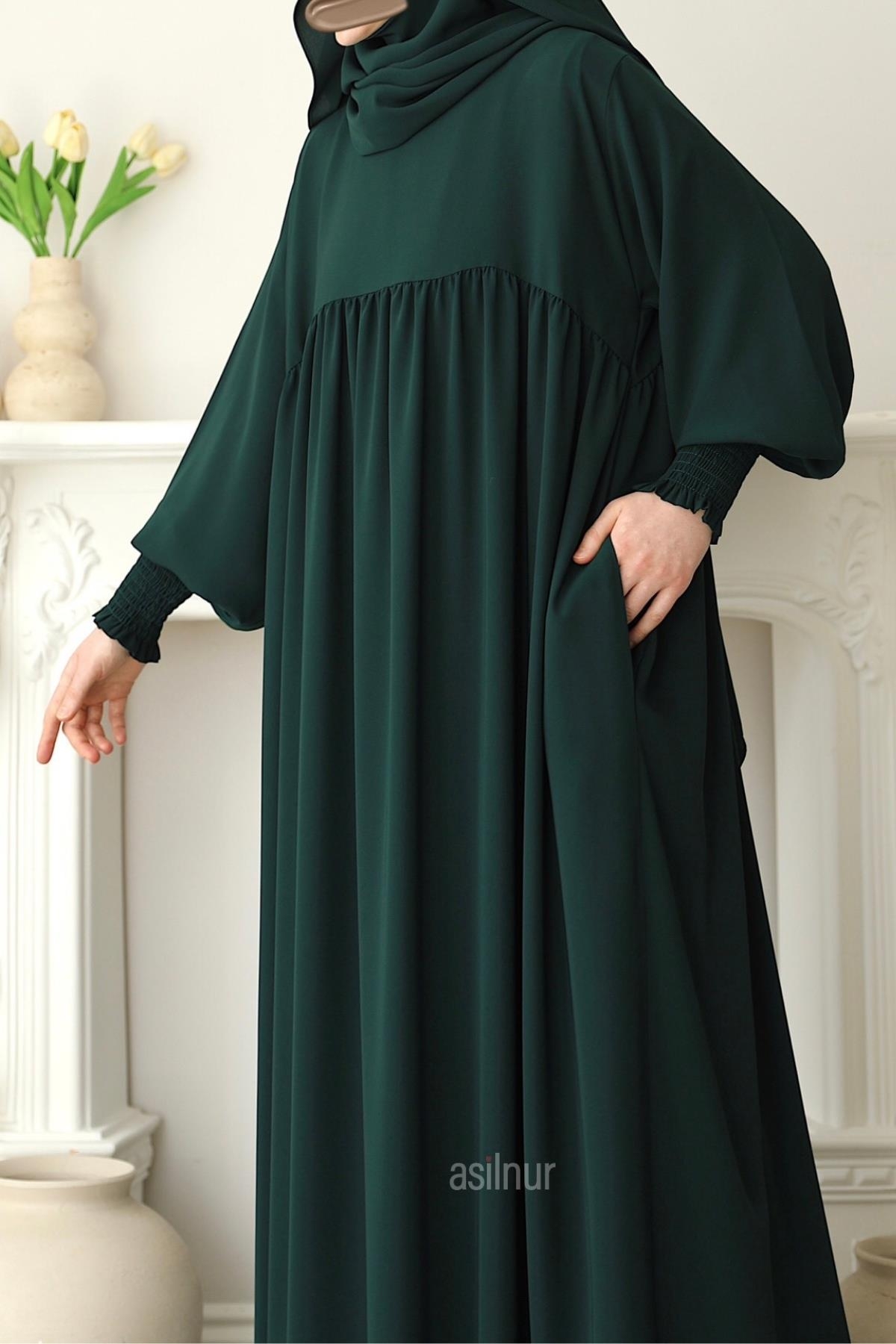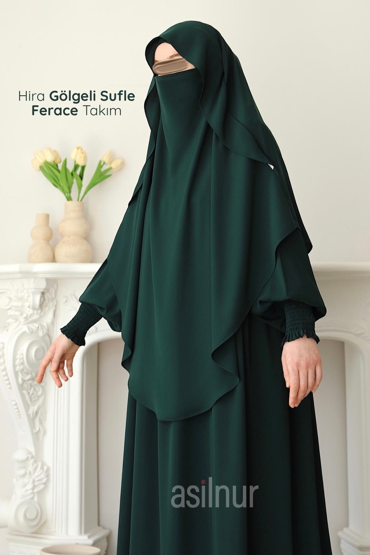 Hira Gölgeli Sufle Ferace Takım Zümrüt Yeşili