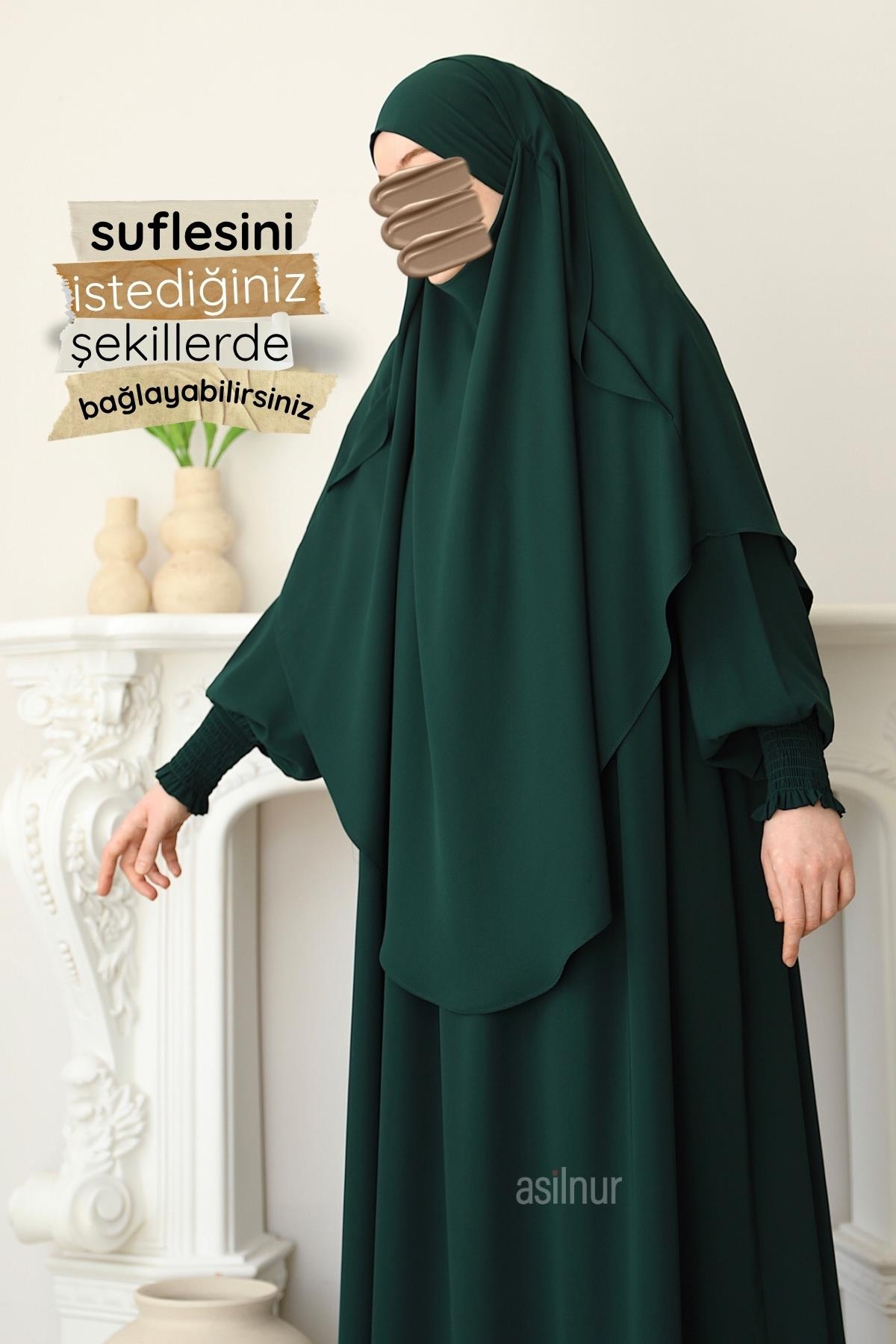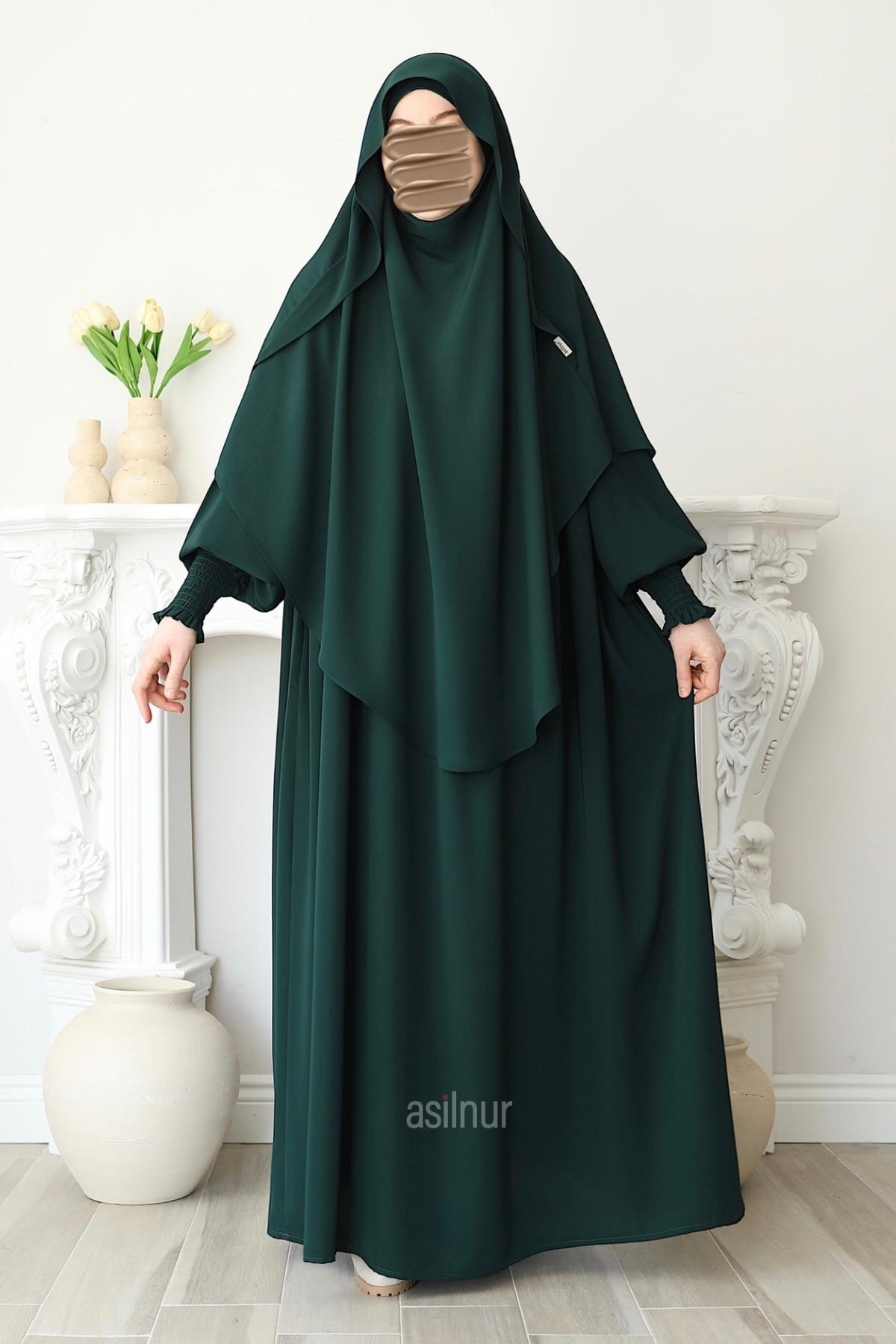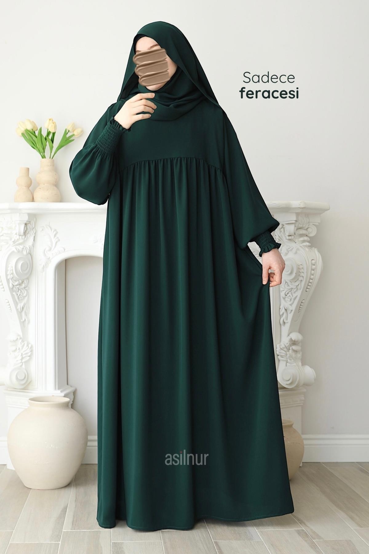 Hira Gölgeli Sufle Ferace Takım Zümrüt Yeşili