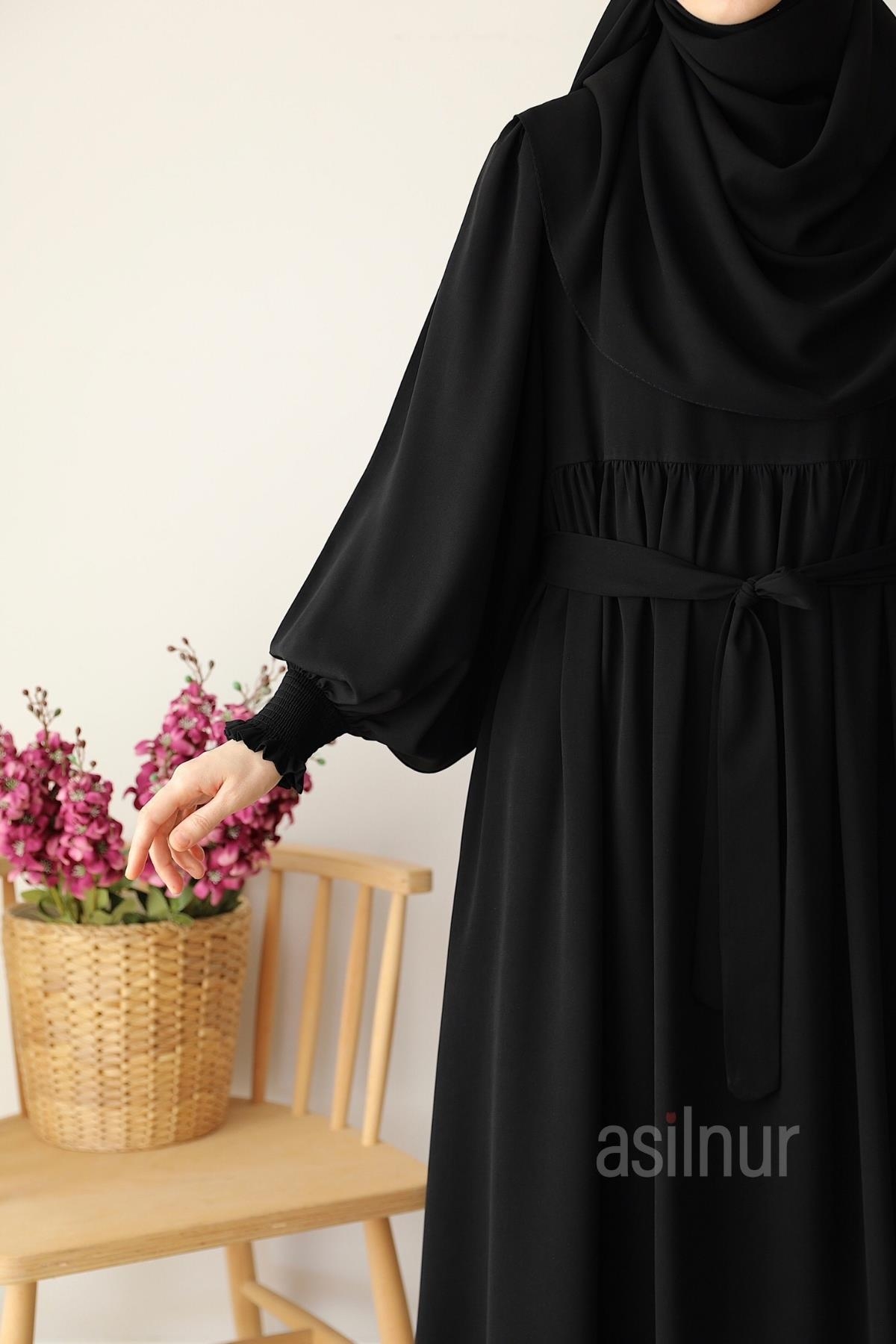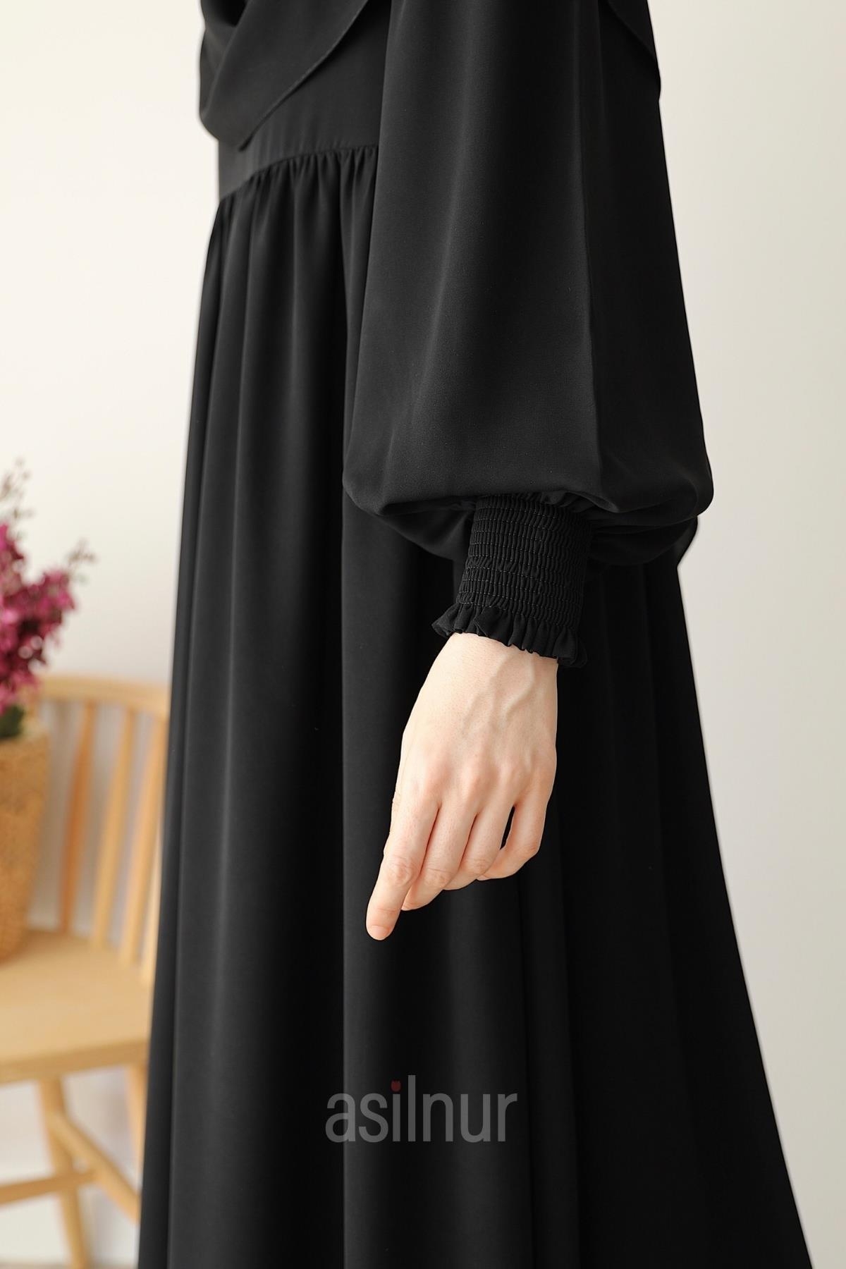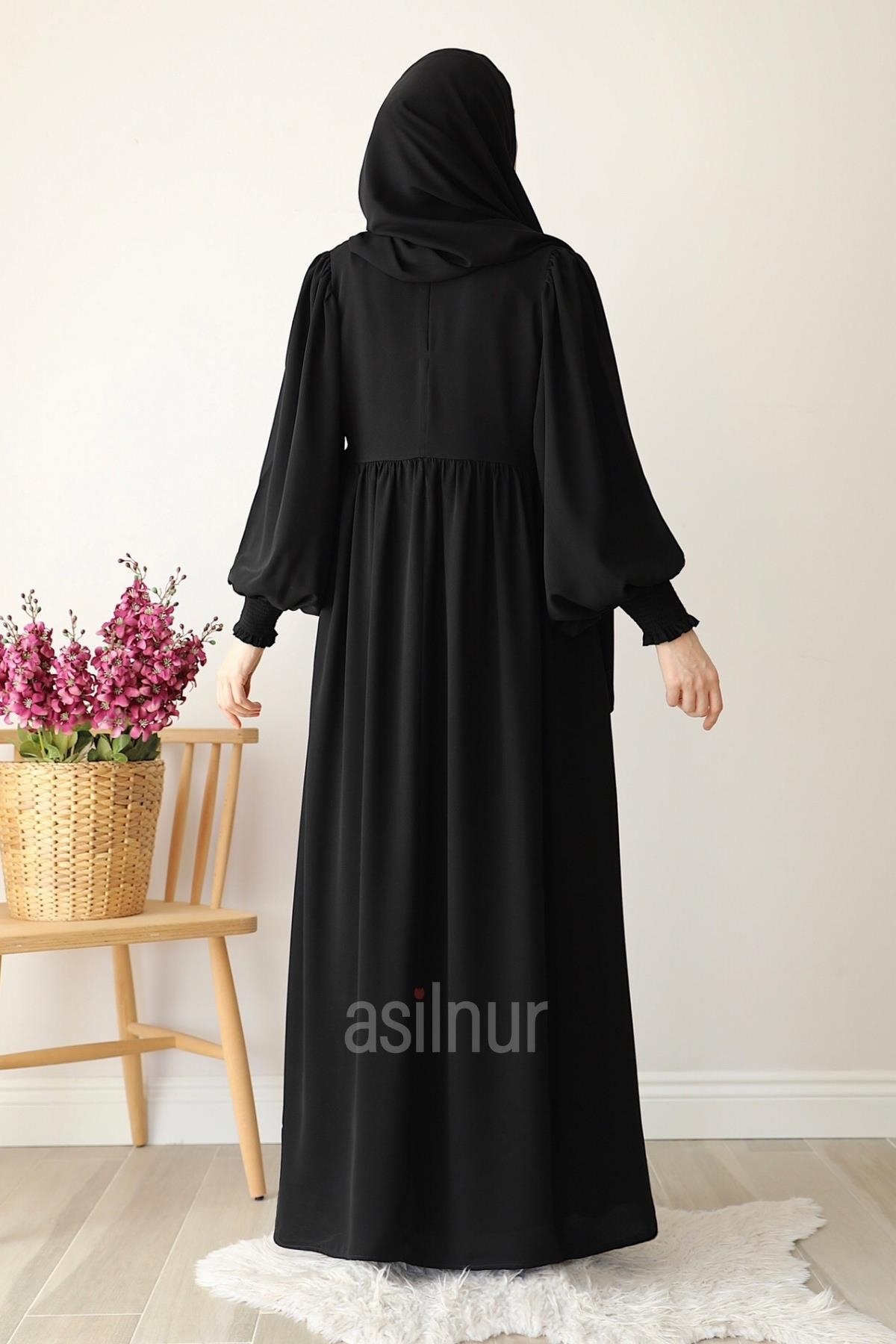 Hüsna Balon Kol Ferace Şal Hediyeli Takım Siyah
