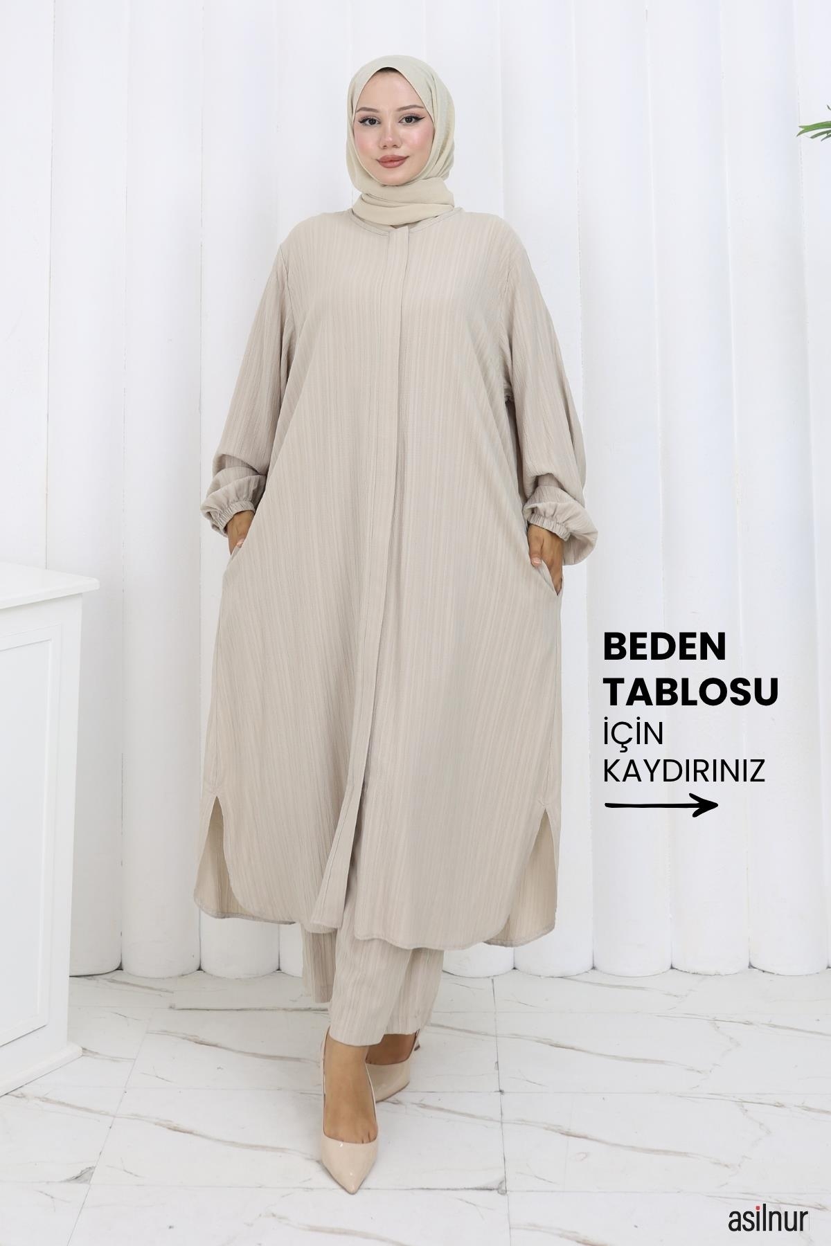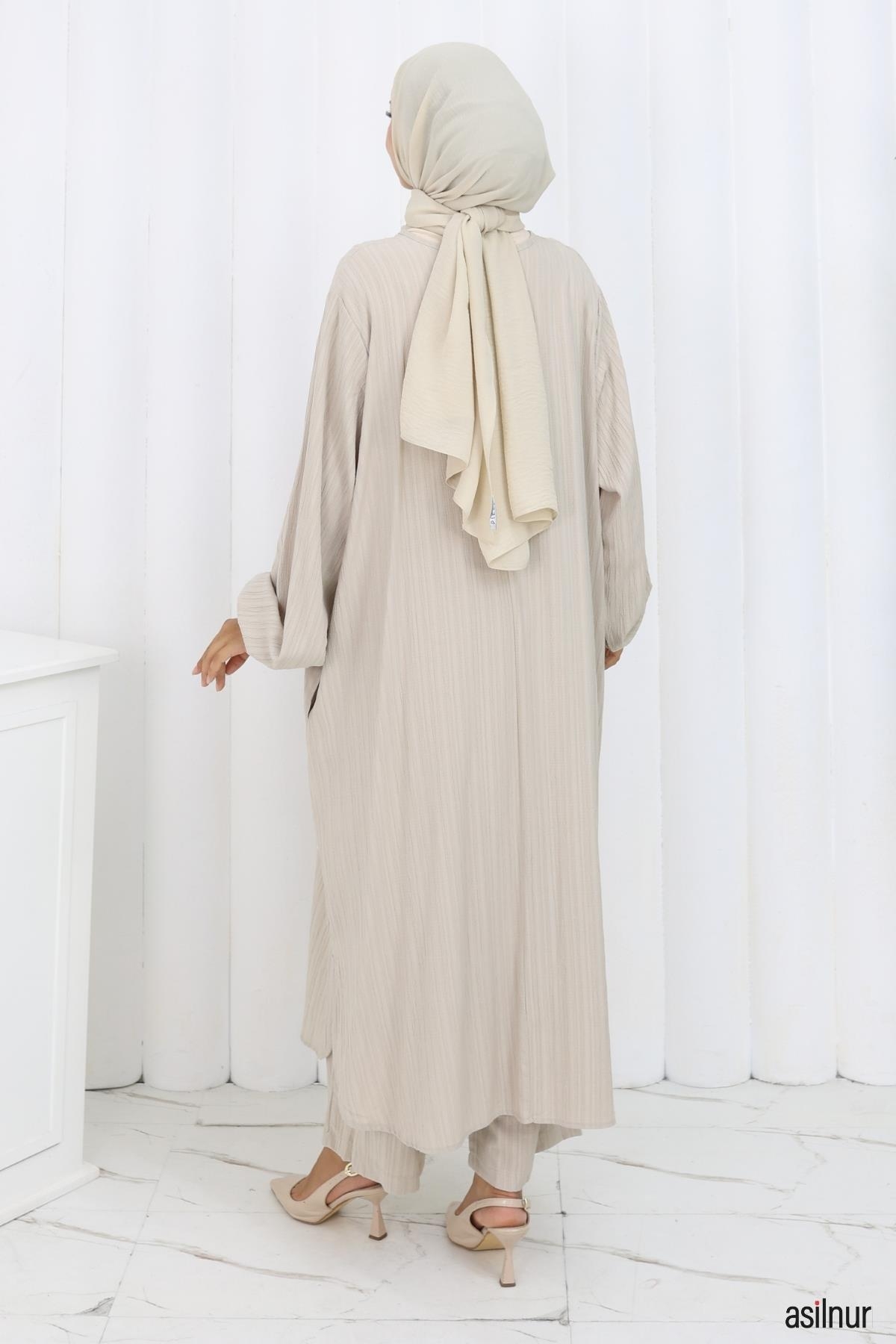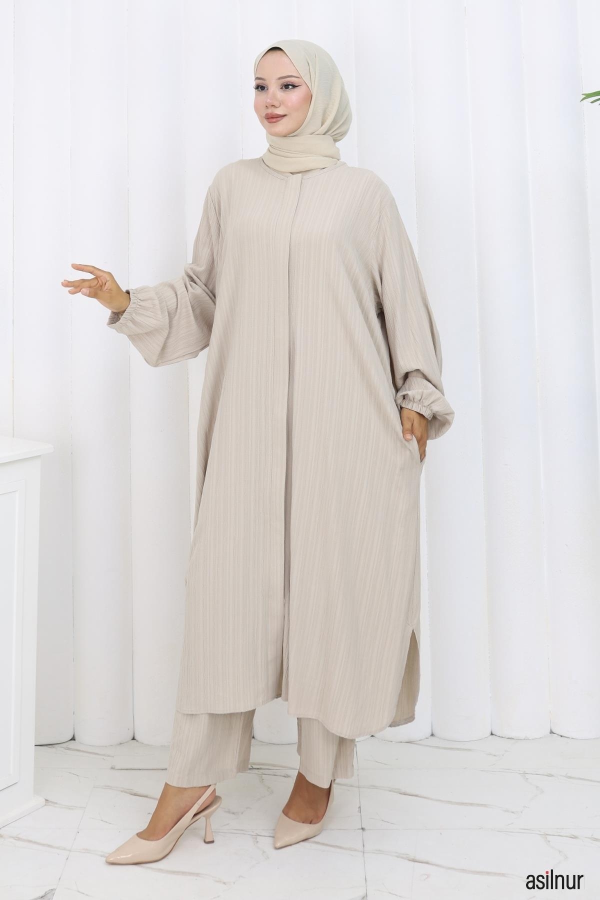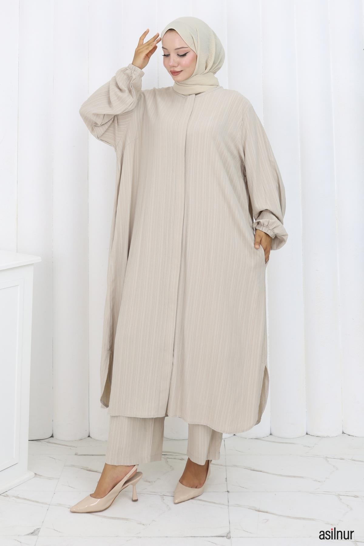Alt ve üst iki parçadan oluşan Umre takımımız pamuklu kumaştan yapılmıştır. Pamuklu kumaşlar nefes alabildiği için yazın sıcak havayı dışarı verirler.