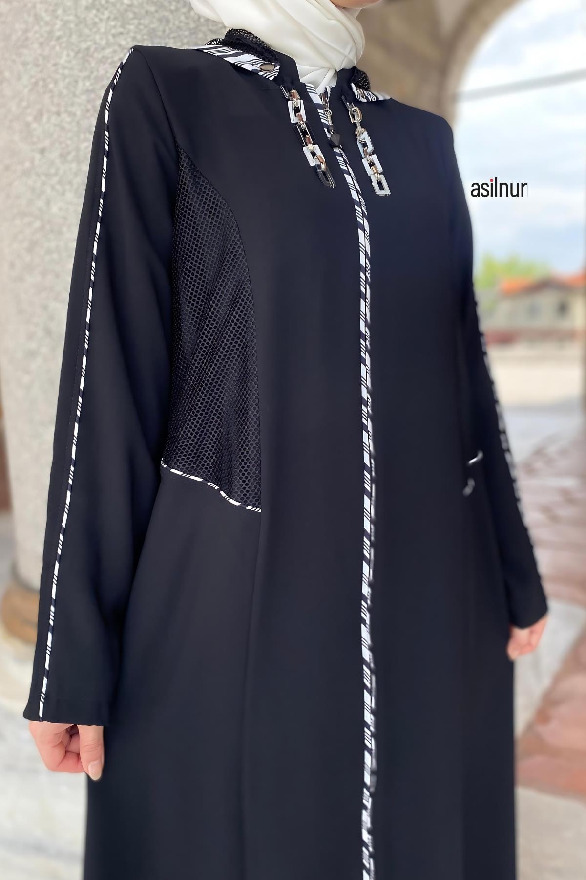 Neva Kapşonlu Fileli Ferace Siyah