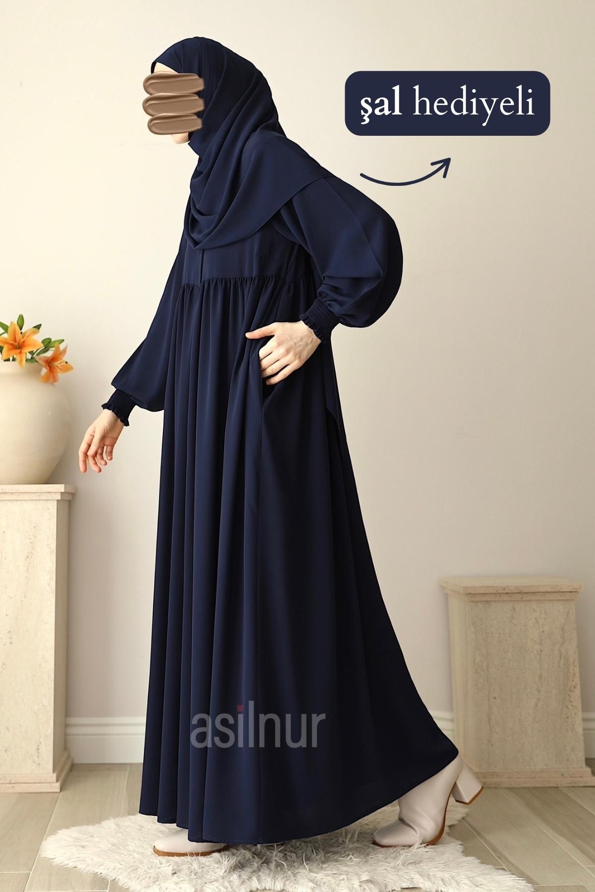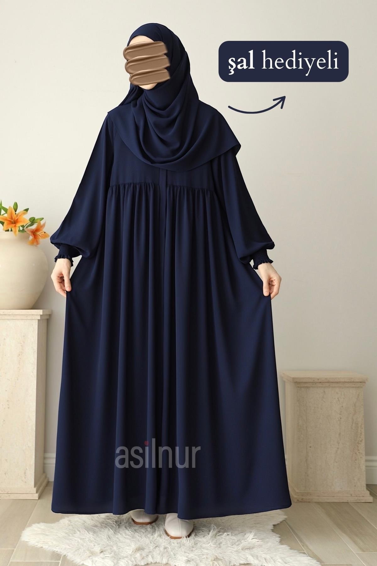 Nisa Ferace Şal Hediyeli Takım Lacivert
