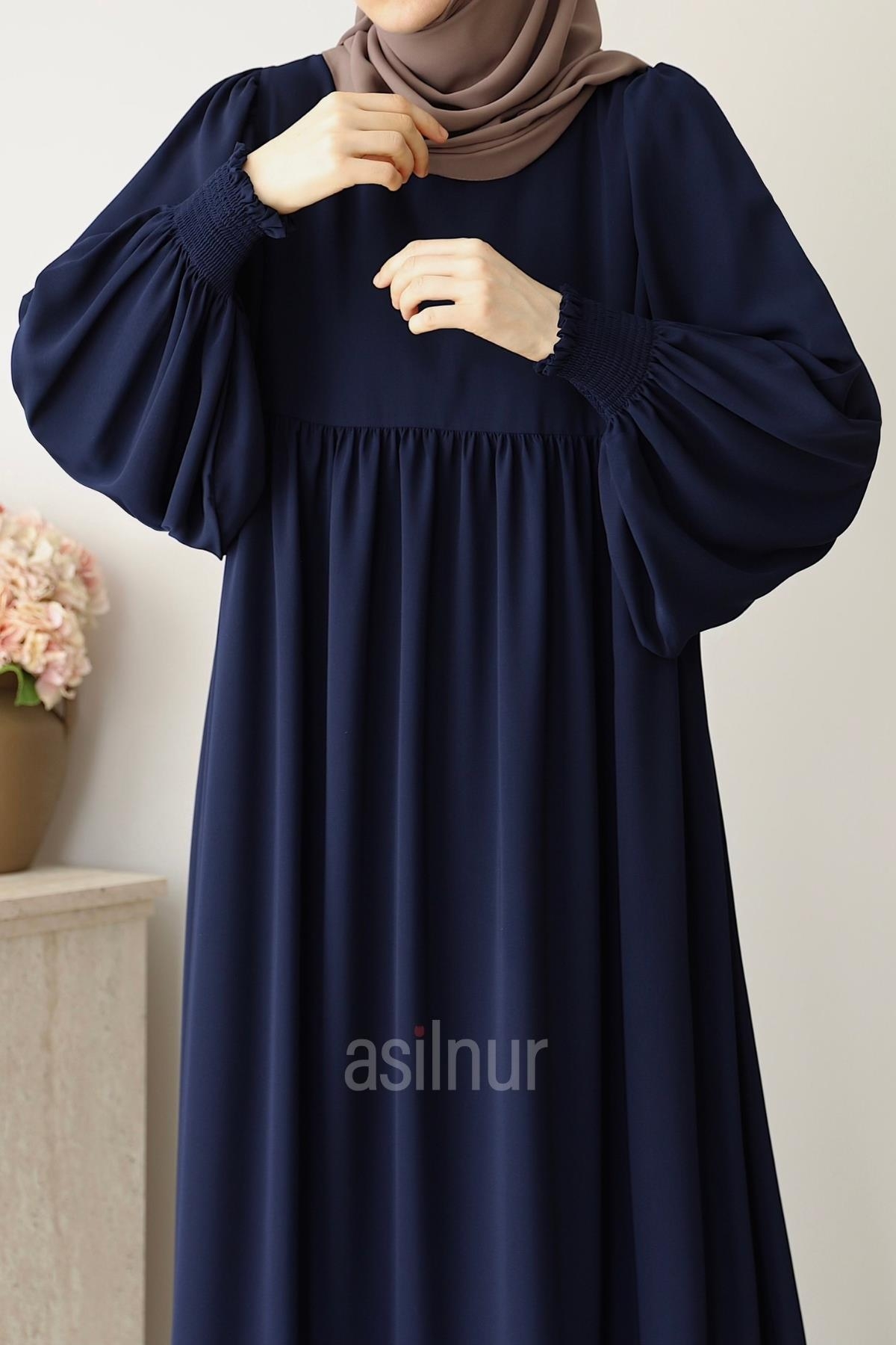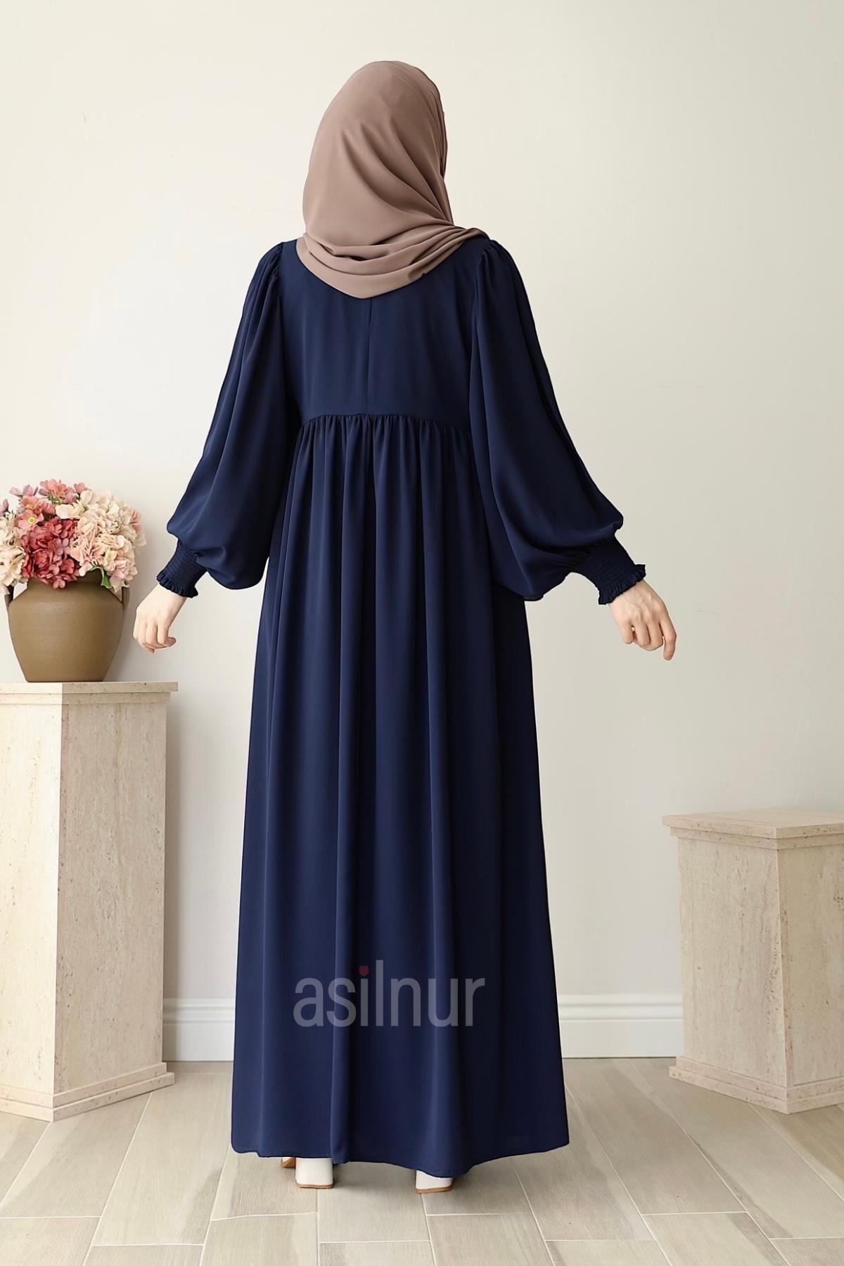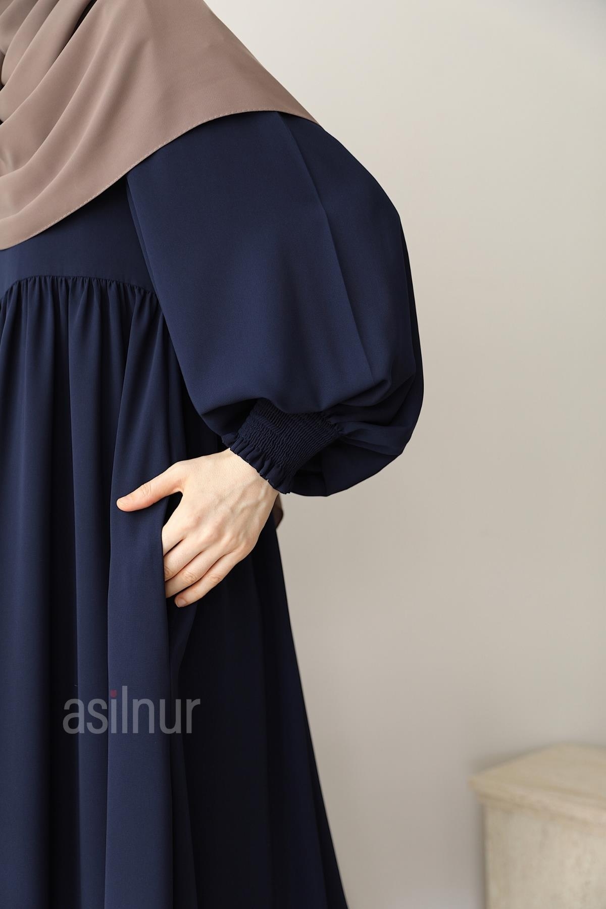 Medine ipeği kumaşı sayesinde dökümlü ve zarif bir görünüm sağlar. Dört mevsim kullanıma uygun yapısı ile her kombine kolayca uyum sağlar. Rahat kalıbı, gipe lastikli balon kolları ve fonksiyonel cepleriyle gün boyu konfor sunar. Pratik fermuar detayıyla hem şık hem de kullanışlı bir elbise arayanlar için ideal bir seçenektir.