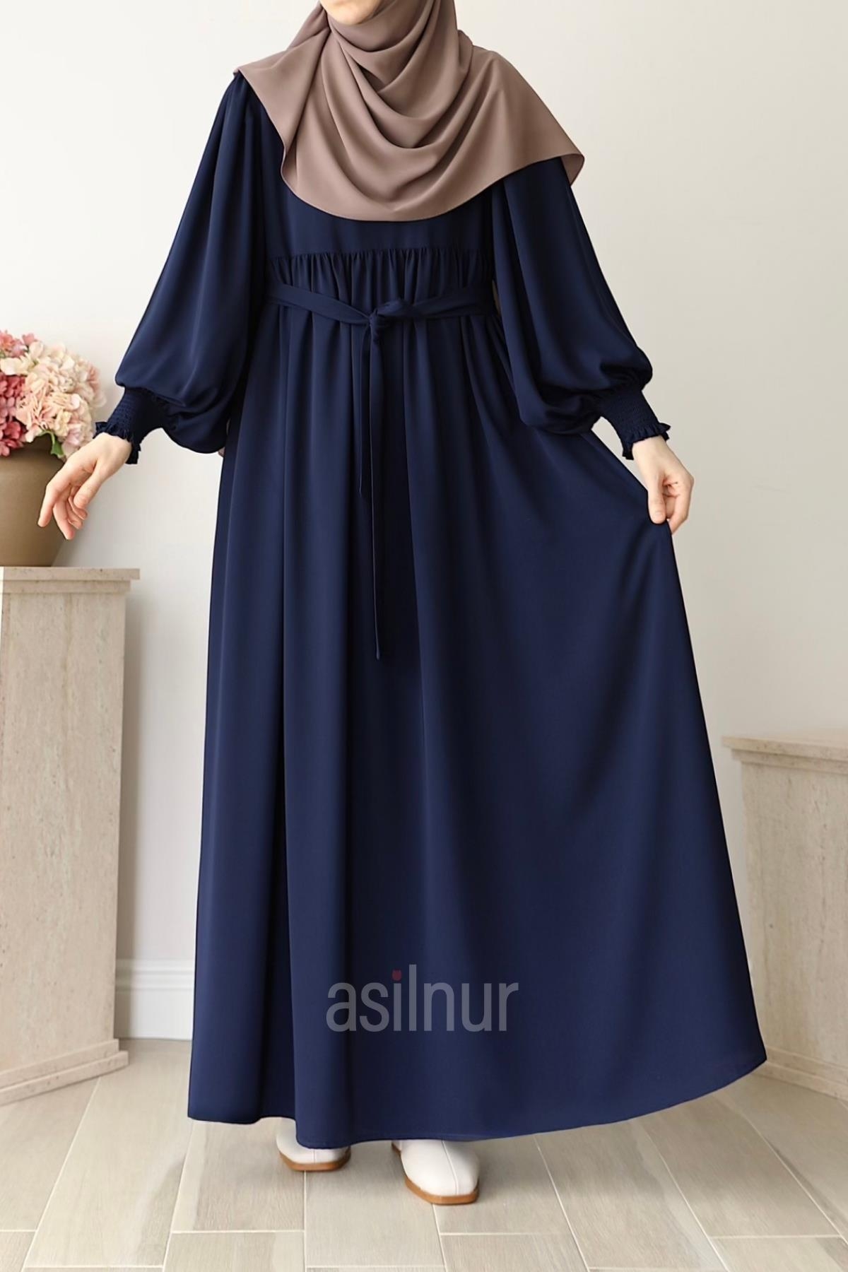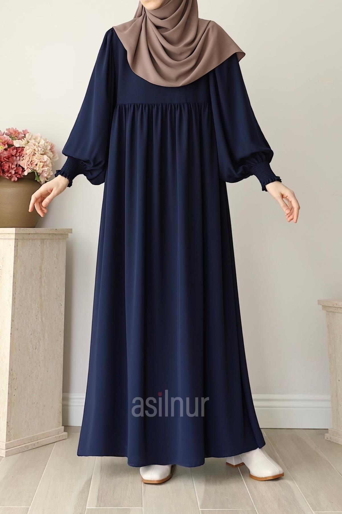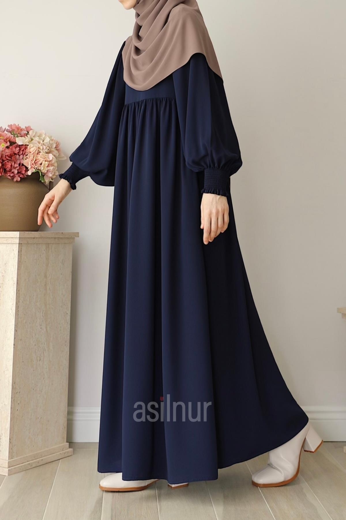 Medine ipeği kumaşı sayesinde dökümlü ve zarif bir görünüm sağlar. Dört mevsim kullanıma uygun yapısı ile her kombine kolayca uyum sağlar. Rahat kalıbı, gipe lastikli balon kolları ve fonksiyonel cepleriyle gün boyu konfor sunar. Pratik fermuar detayıyla hem şık hem de kullanışlı bir elbise arayanlar için ideal bir seçenektir.
