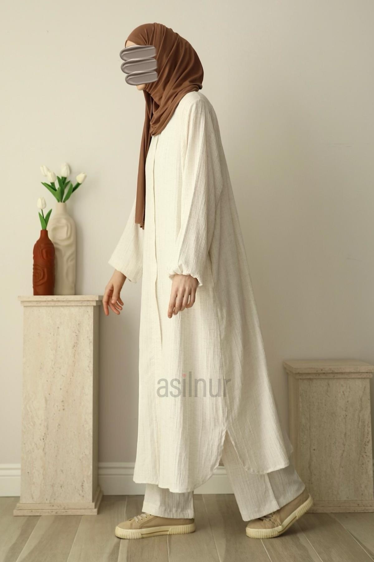 Alt ve üst iki parçadan oluşan takımımız Umre’ye gittiğinizde, Arap Yarımadası’nın sıcaklığı düşünüldüğünde, Mekke ve Medine’de giymek için uygun bir seçenektir.