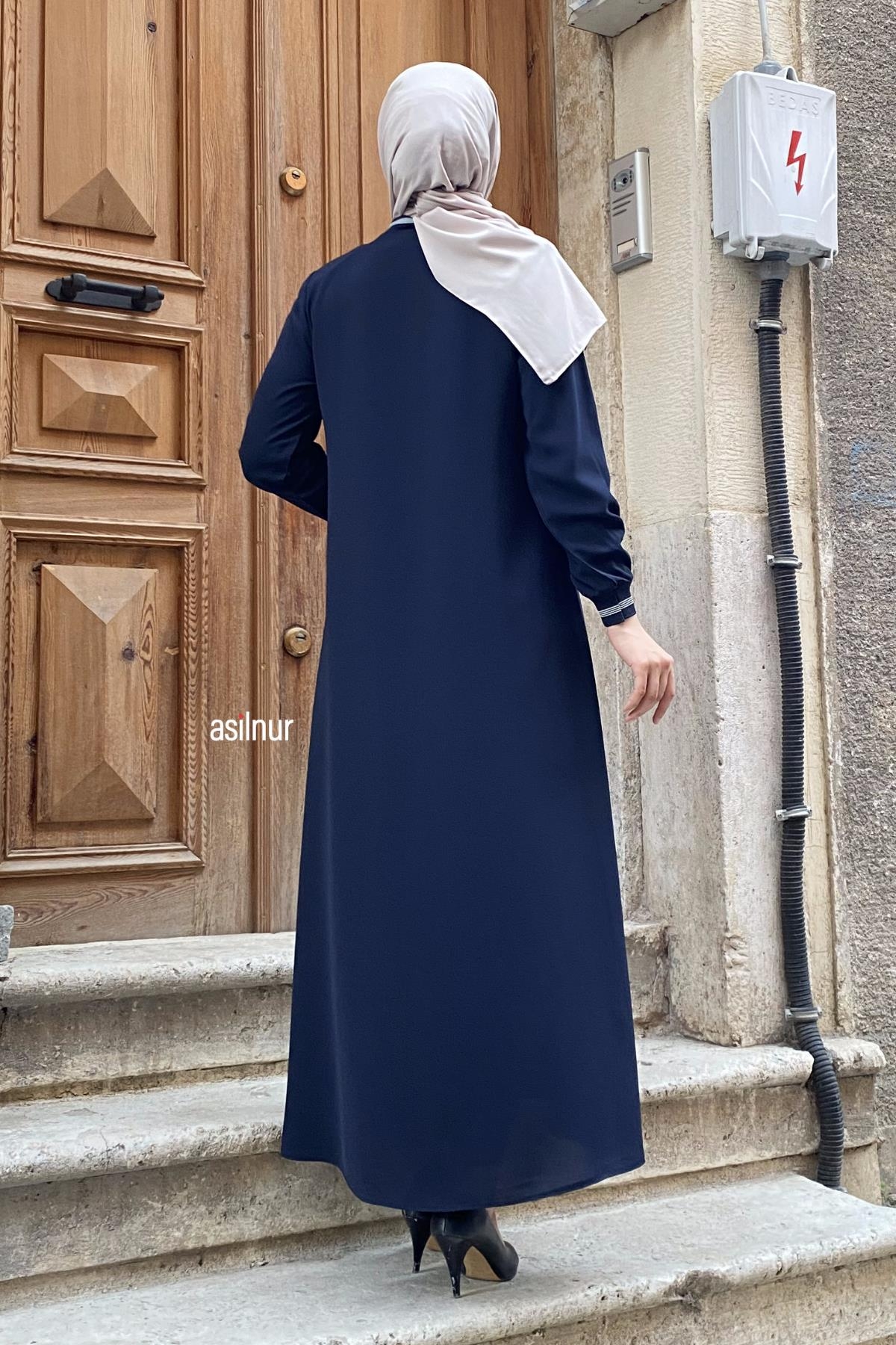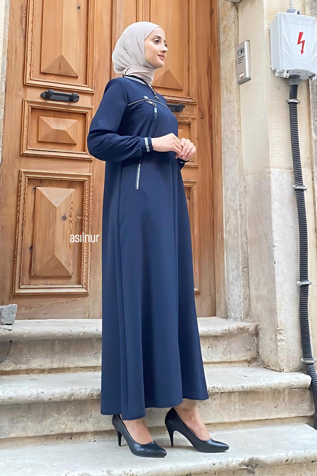Nida Ribanalı Ferace, orta kalınlıktaki Buhara kumaşıyla dört mevsim boyunca şıklığı ve rahatlığı bir arada sunar. Tam kalıbı ve bisiklet yaka tasarımı ile sade bir duruş sergileyen bu model, ribana detaylarıyla spor ve modern bir görünüm kazanır.