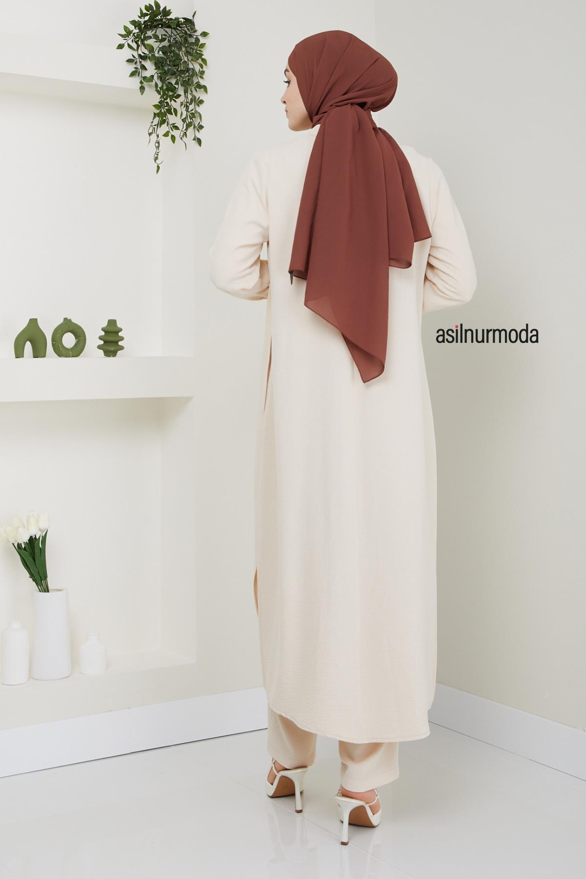 Cepli yapısı sayesinde pratiklik sağlayan bu takım, hem günlük kullanımda hem de özel anlarda tercih edilebilecek zarif bir seçenektir.
