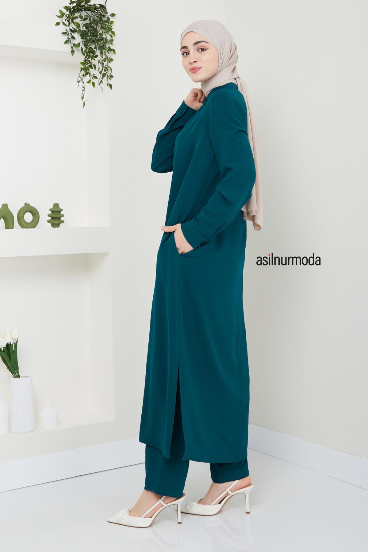 Cepli yapısı sayesinde pratiklik sağlayan bu takım, hem günlük kullanımda hem de özel anlarda tercih edilebilecek zarif bir seçenektir.