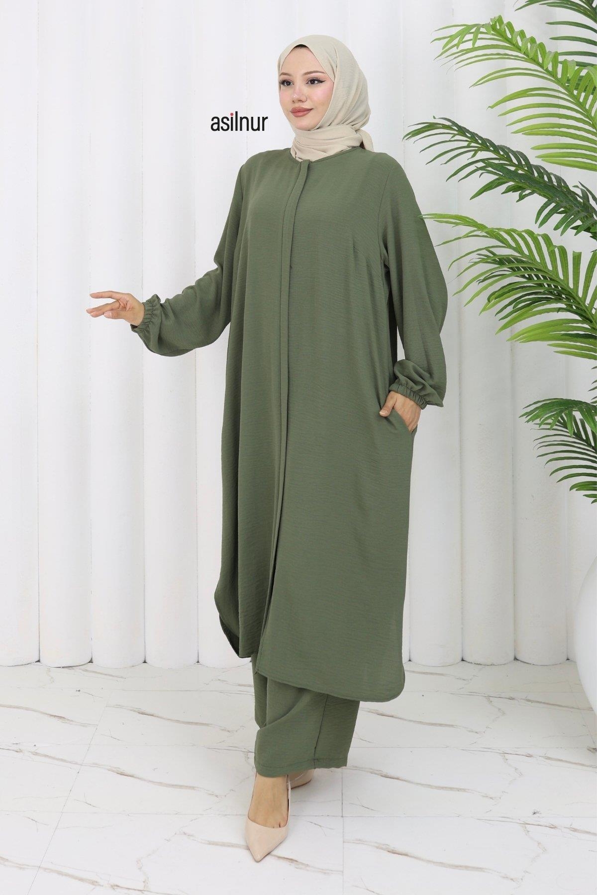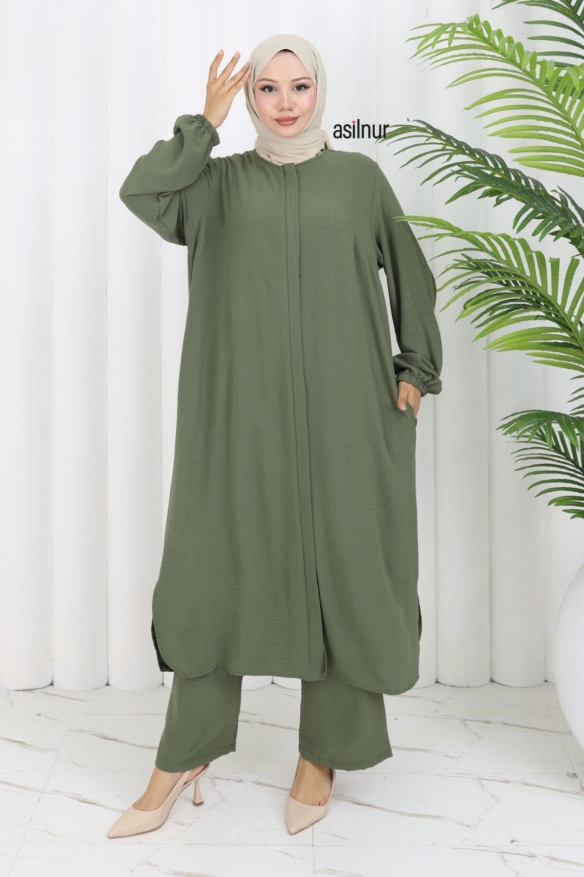 Fermuarı ve cepli yapısıyla pratikliği bir araya getiren Sena Takım, hem günlük kullanıma hem de özel anlara uygun zarif bir seçenektir
