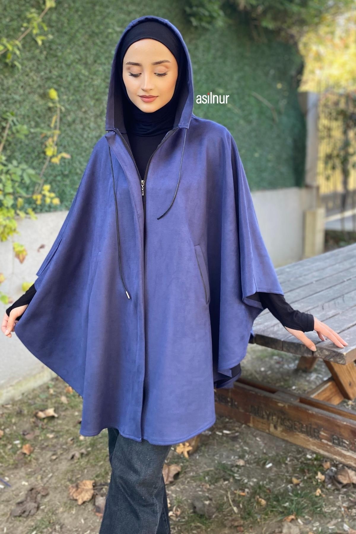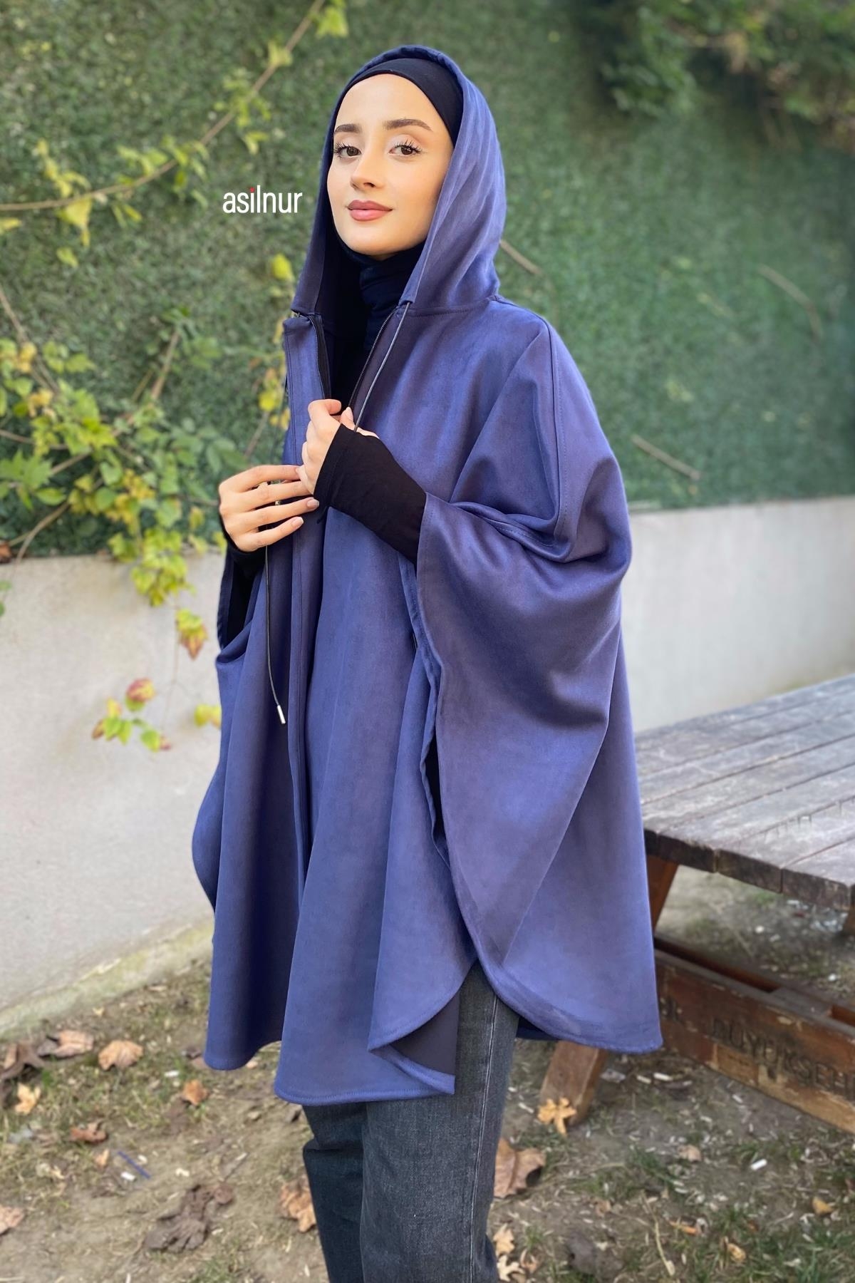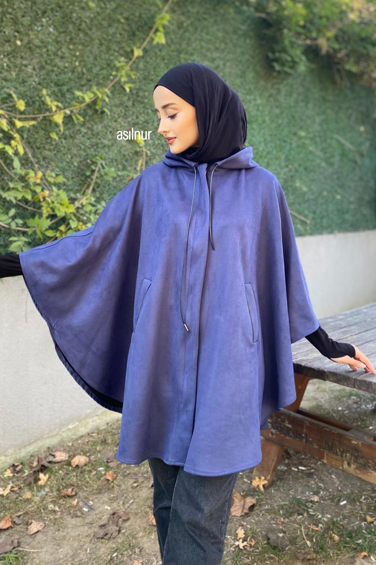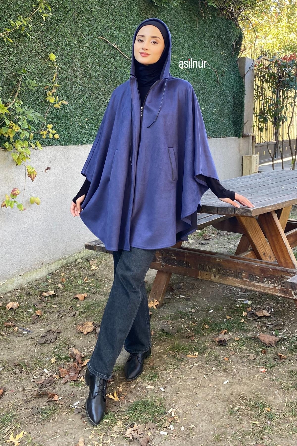 Süet Panço, kış sezonu için özel olarak tasarlanmış sıcak ve zarif bir tesettür giyim parçasıdır.