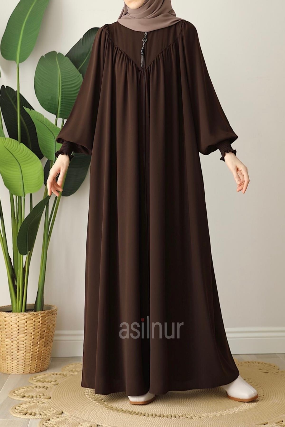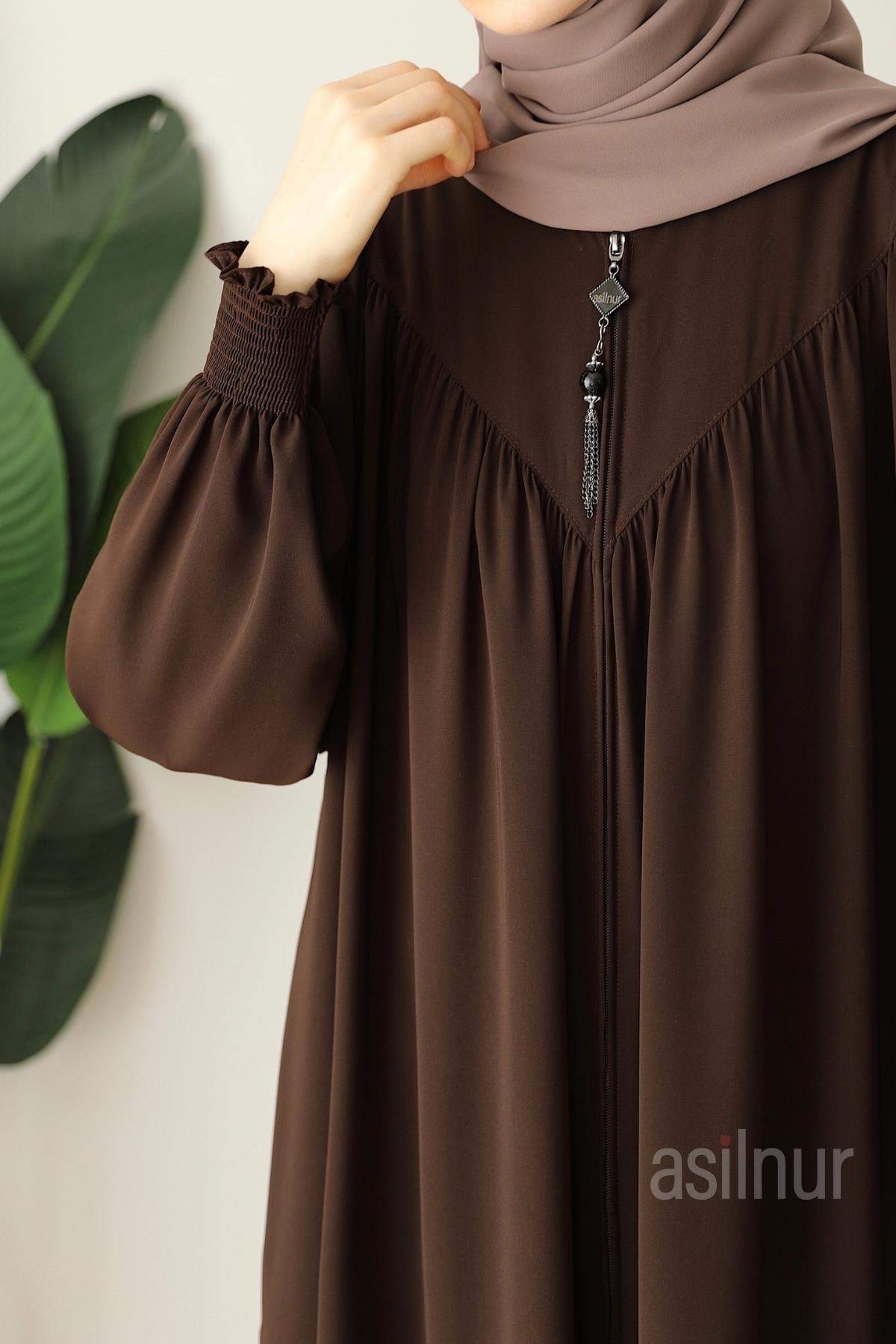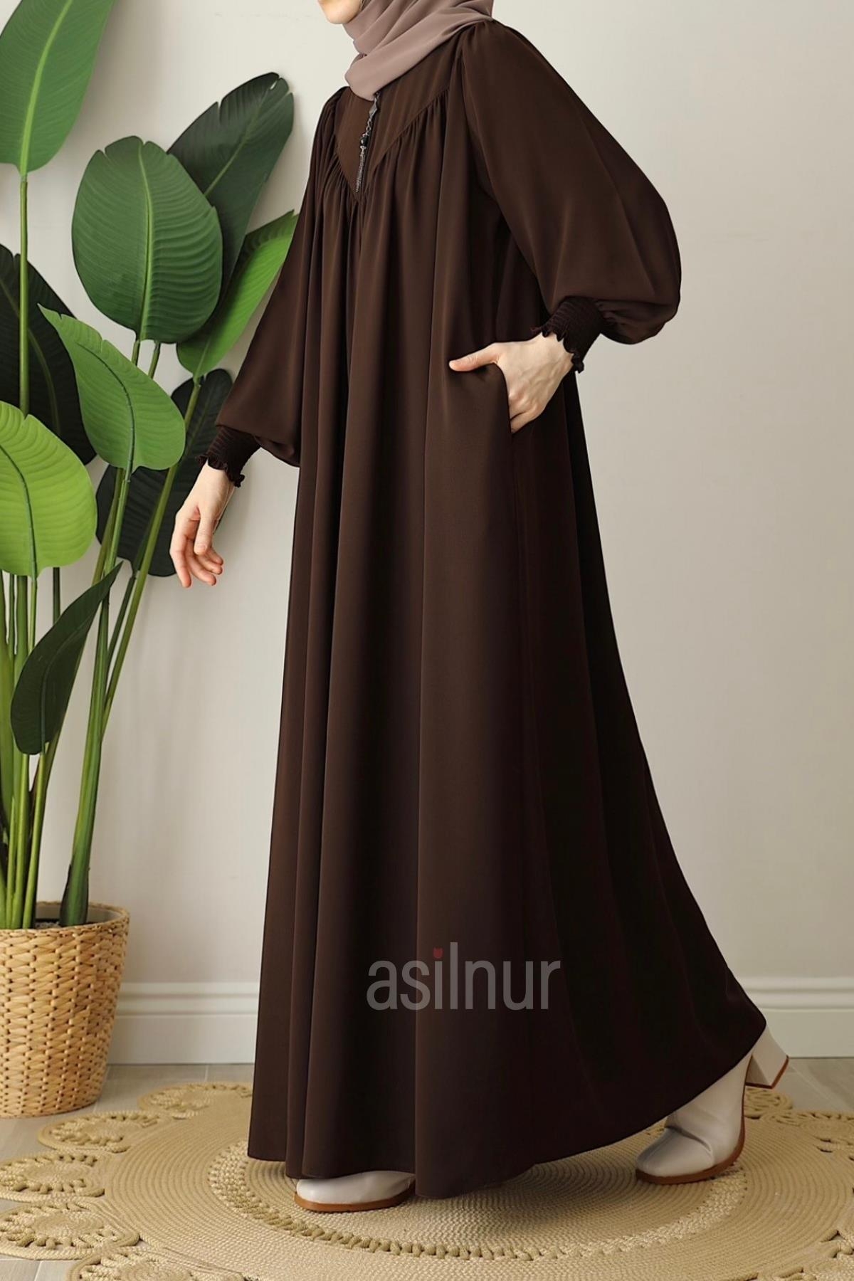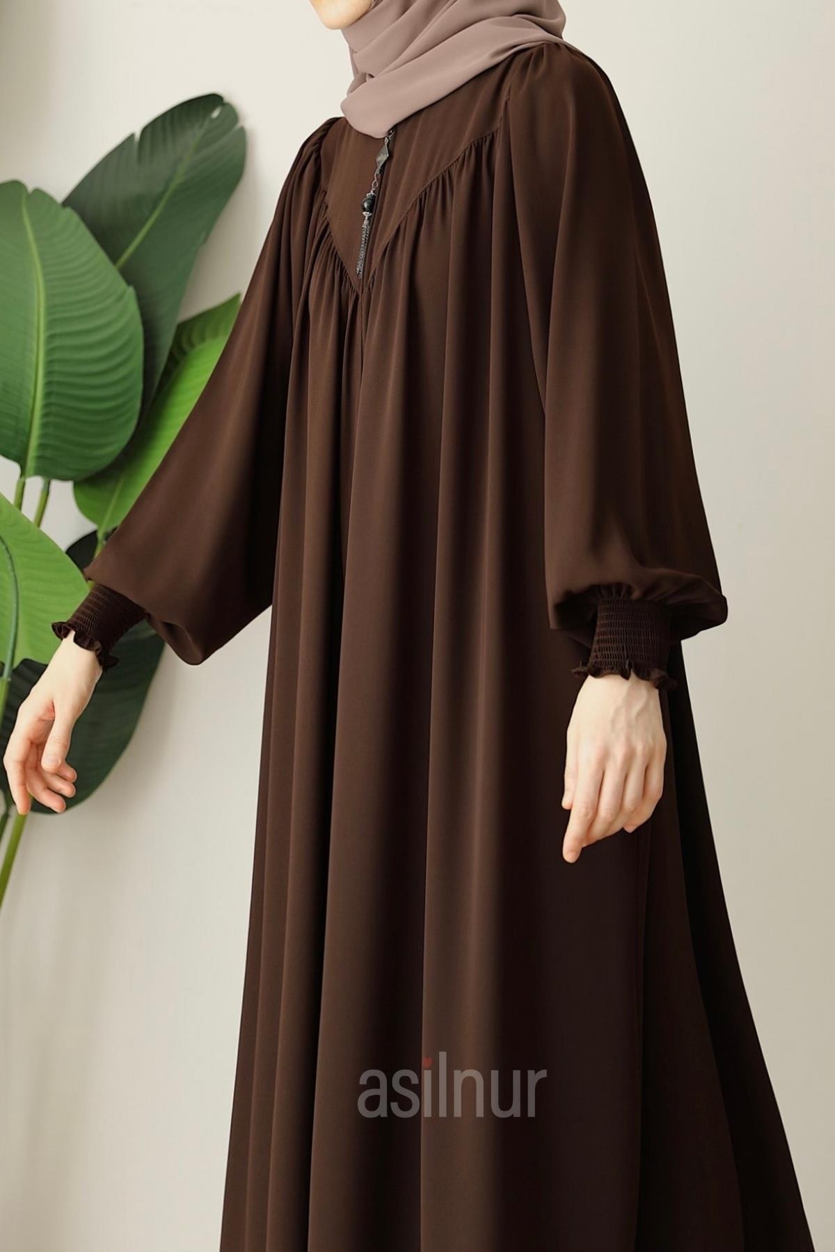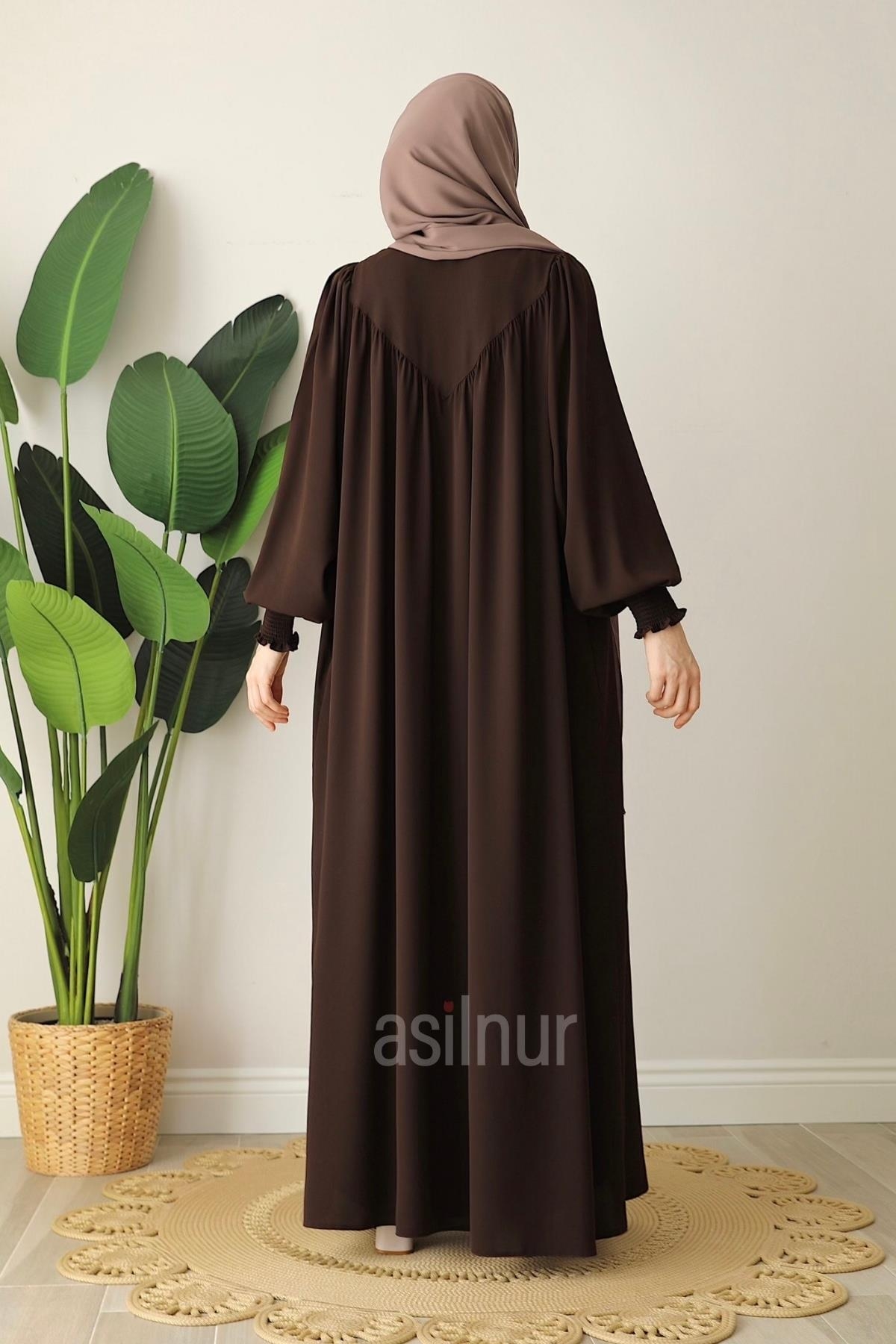 Vera Ferace göğüs kısmındaki V şeklinde büzgü detayıyla zarif bir duruş sergilerken Medine İpeği kumaşı sayesinde dört mevsim boyunca şıklığınızı tamamlar.