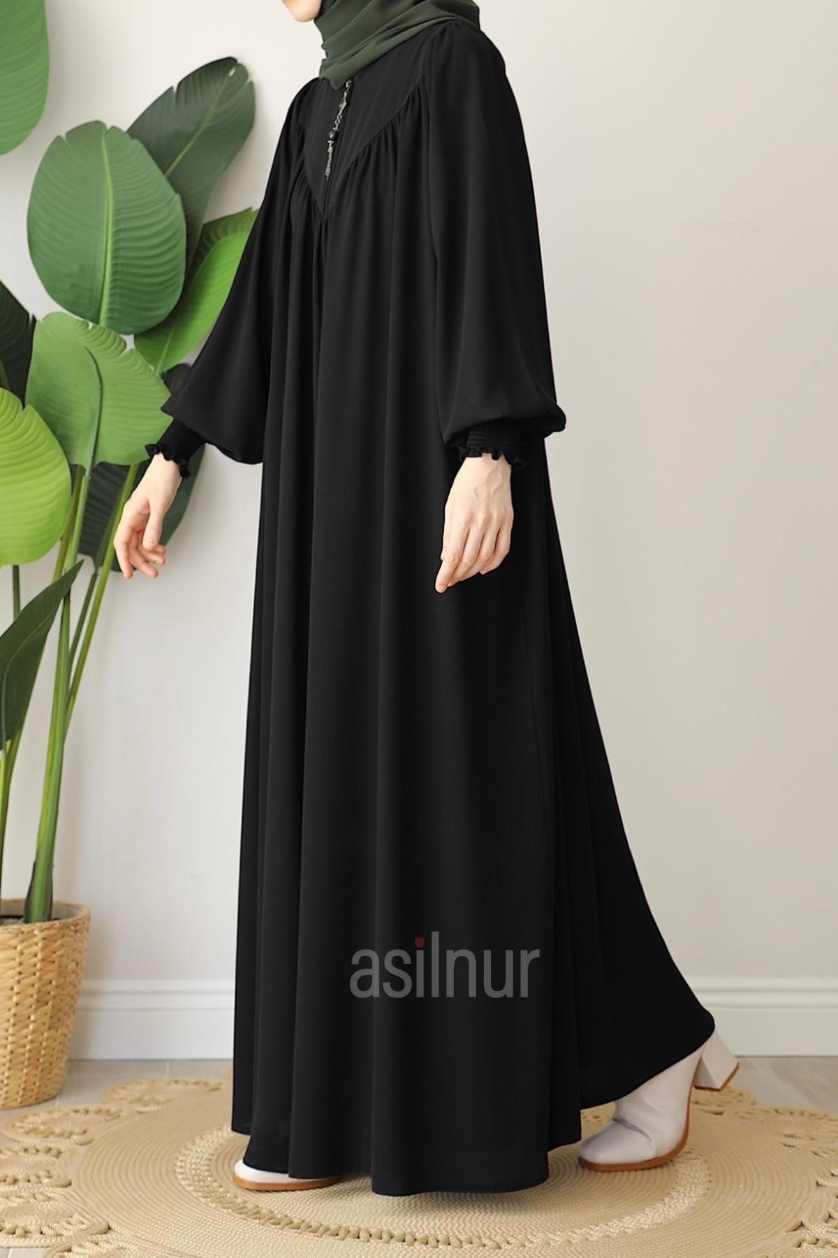 Vera Ferace göğüs kısmındaki V şeklinde büzgü detayıyla zarif bir duruş sergilerken Medine İpeği kumaşı sayesinde dört mevsim boyunca şıklığınızı tamamlar.