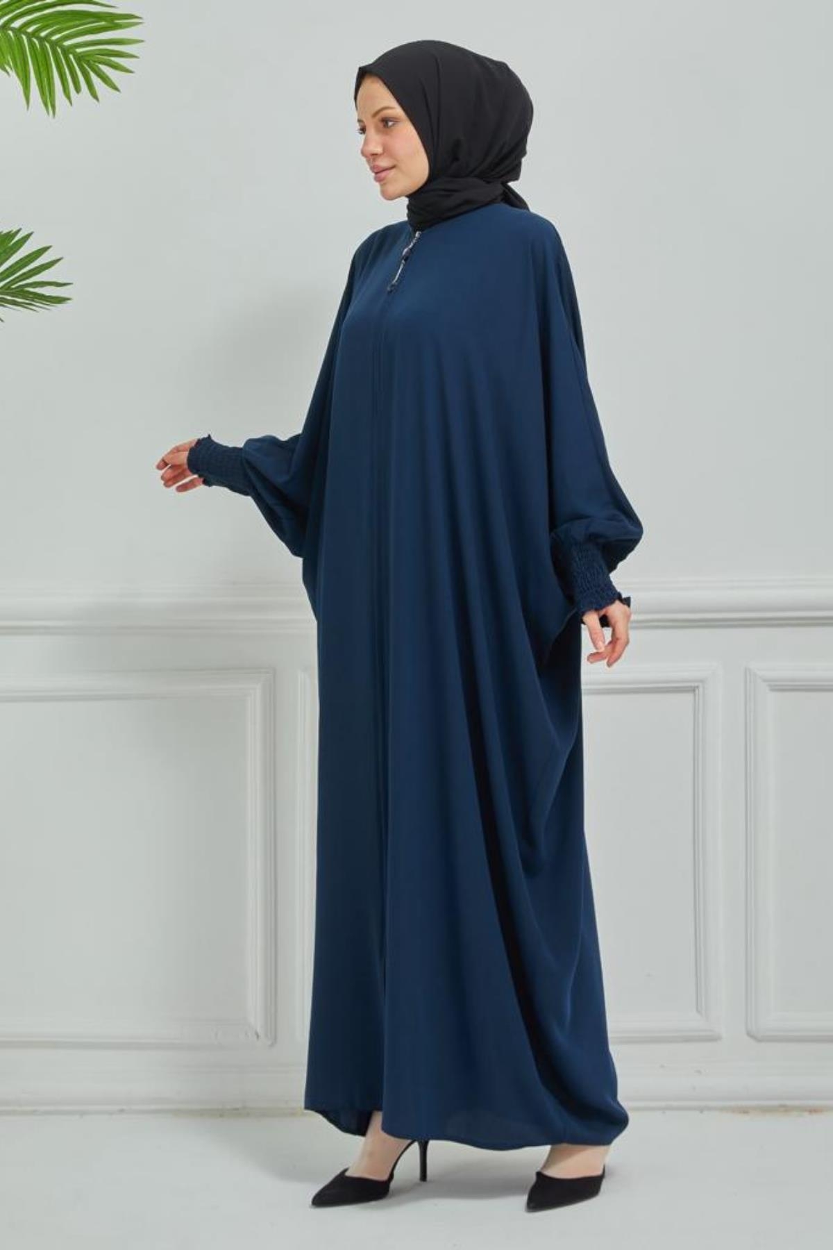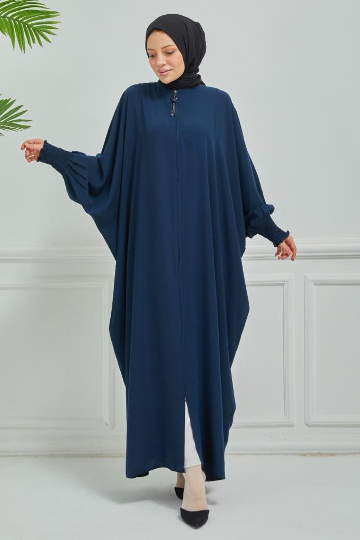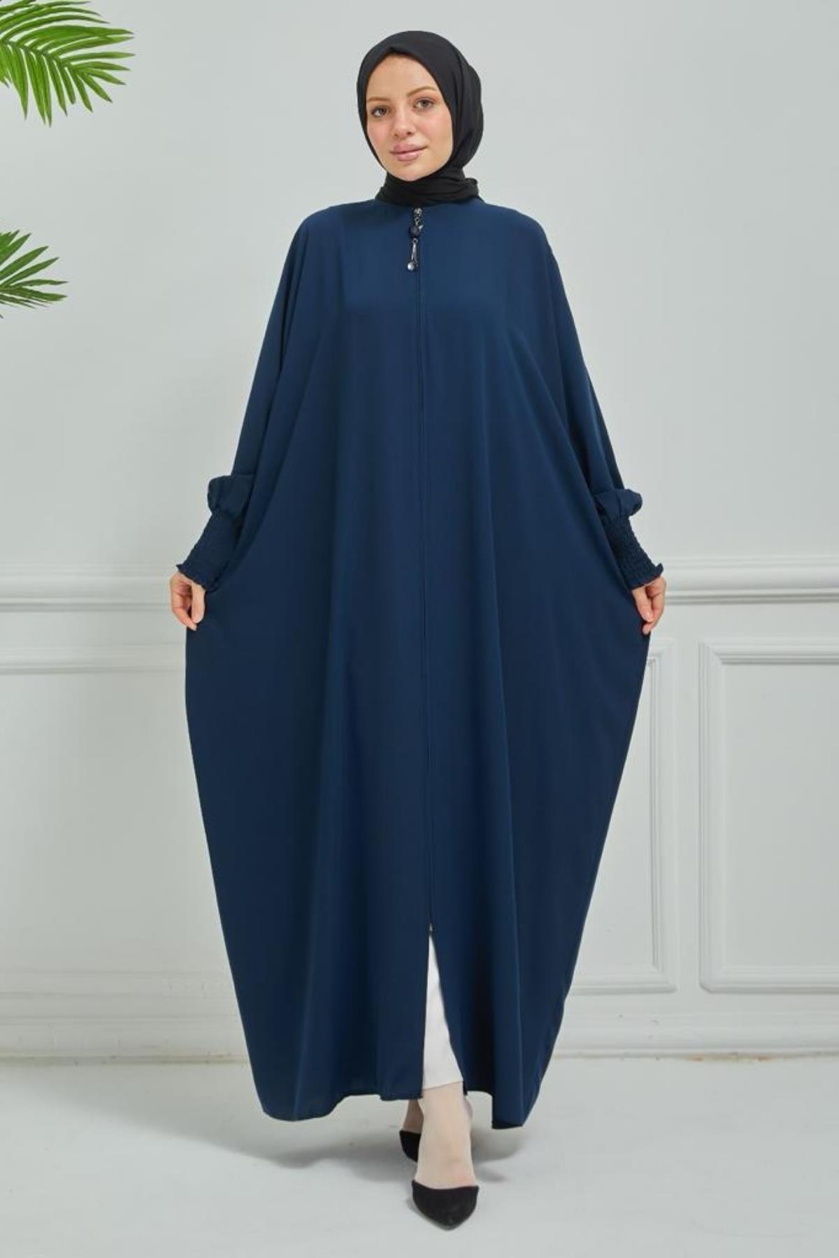 Fermuarlı Yarasa Kol Ferace Medine İpeği kumaşıyla dört mevsim kullanıma uygundur ve rahat kalıptır.